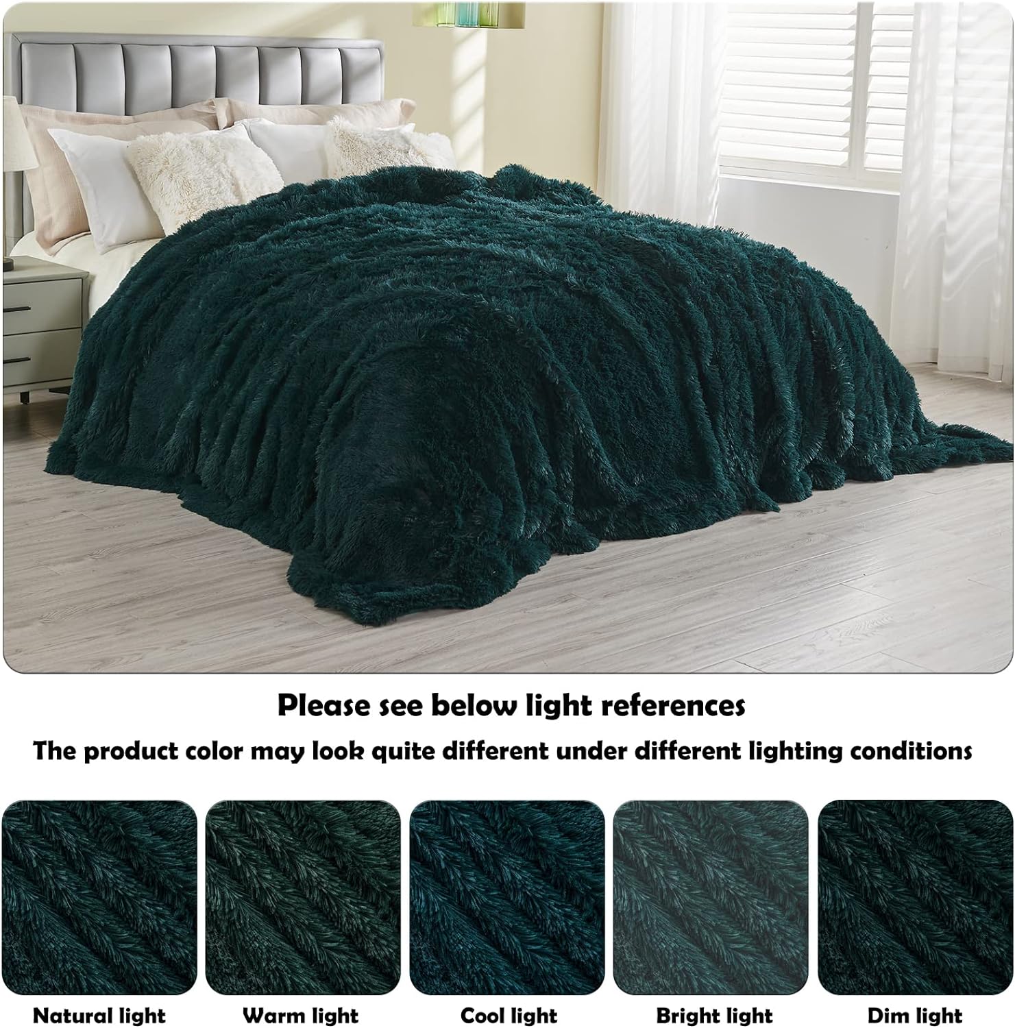 GONAAP Fuzzy Faux Fur Throw Blanket Queen Size Dark Teal Super Soft Cozy Plush Fuzzy Shaggy Blanket for Couch Sofa Bed (Dark Teal, Queen(90"x90"))