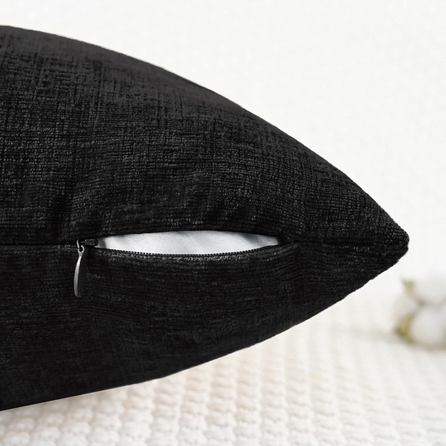 CaliTime Throw Pillow Covers Decorative 18 X 18 Inches Pack of 4 Cozy Chenille Cushion Cases for Couch Sofa Bed Living Room Home Black