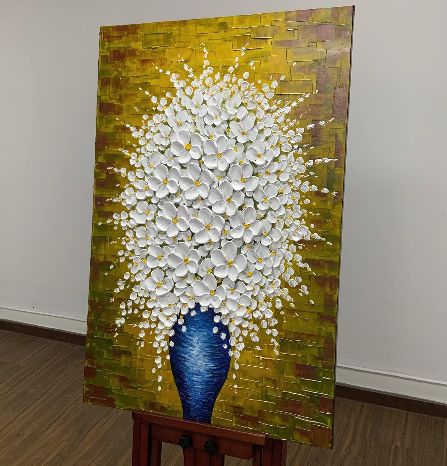 V-inspire Art,24x36 Inch Plump Floral Canvas Hand drawn Framed Blossom Tree Oil Painting on Canvas Gallery Wrapped Flower Paintings Living Room Traditional Ornament