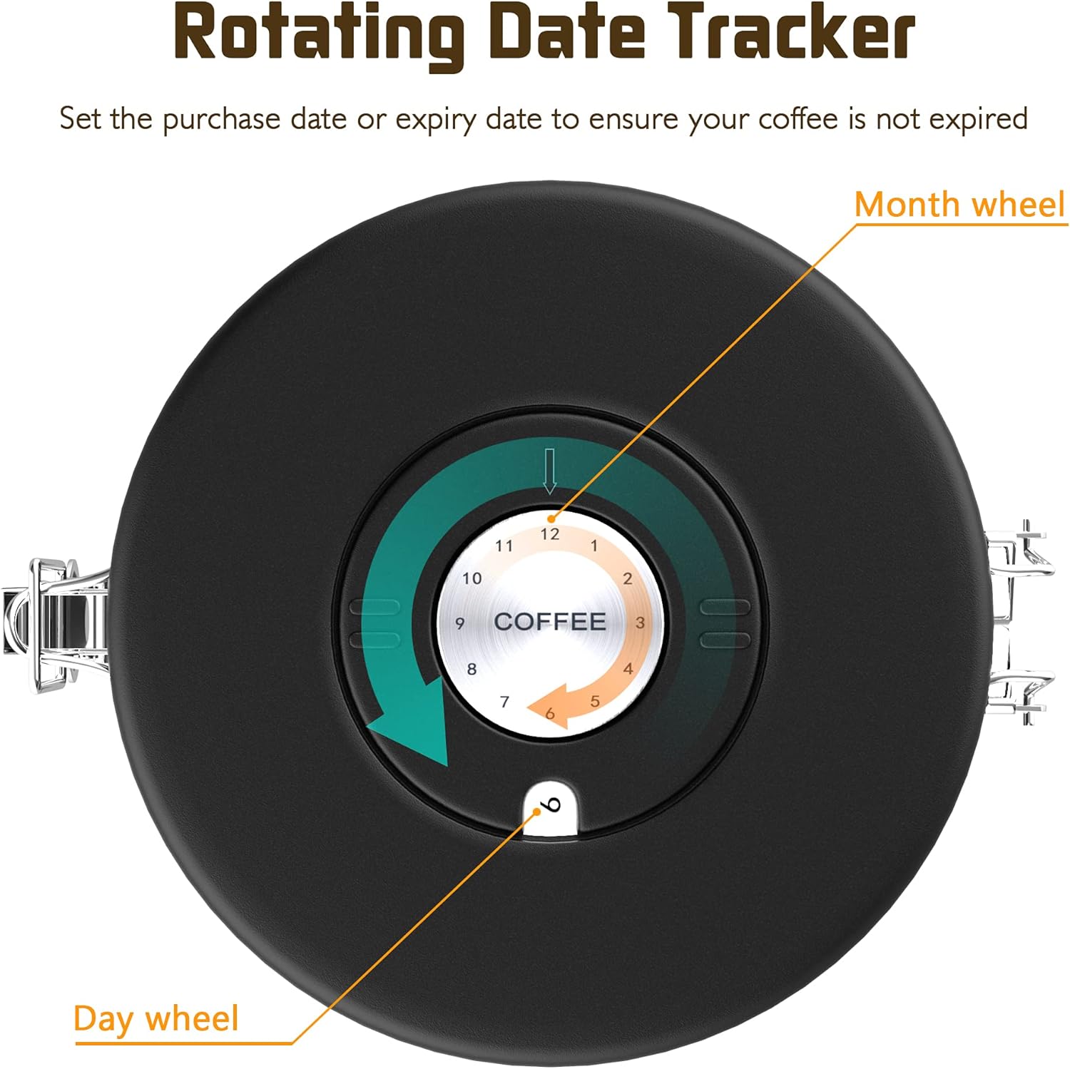 - 【 Date tracking and airtightness 】 The coffee canister is designed with a lock, and the wood grain colored lid is equipped with a silicone gasket. The top of the lid has a date tracking wheel. You can set the shelf life when loading coffee, and the next time you open it, you will know how long it will be stored.