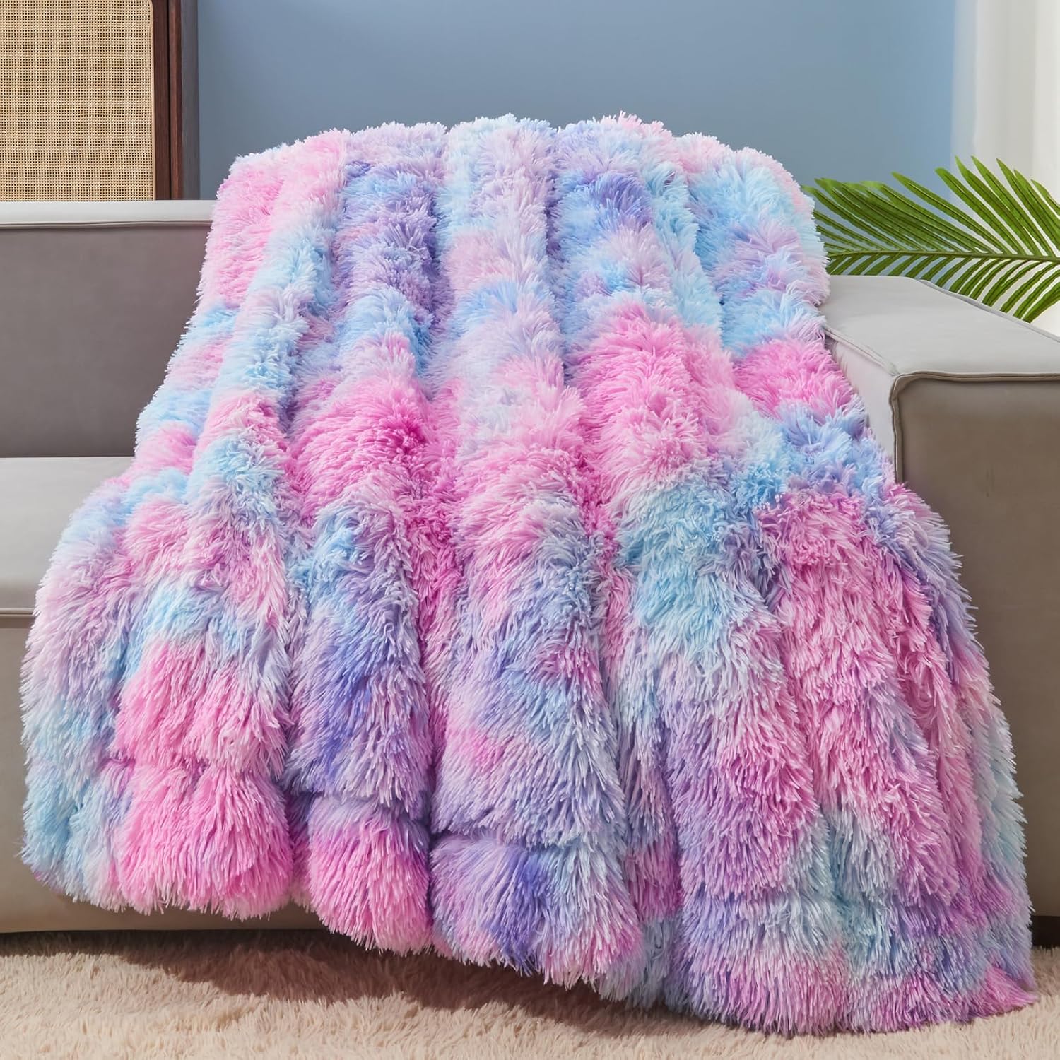- Elegant & Cozy: Diverse patterns including tie dye, solid colors, dots and stripes and 1.5 inches of soft faux fur enhance the classy appearance of the blanket to complement the chic feeling of your room. Bring you all year round coziness and elegance.