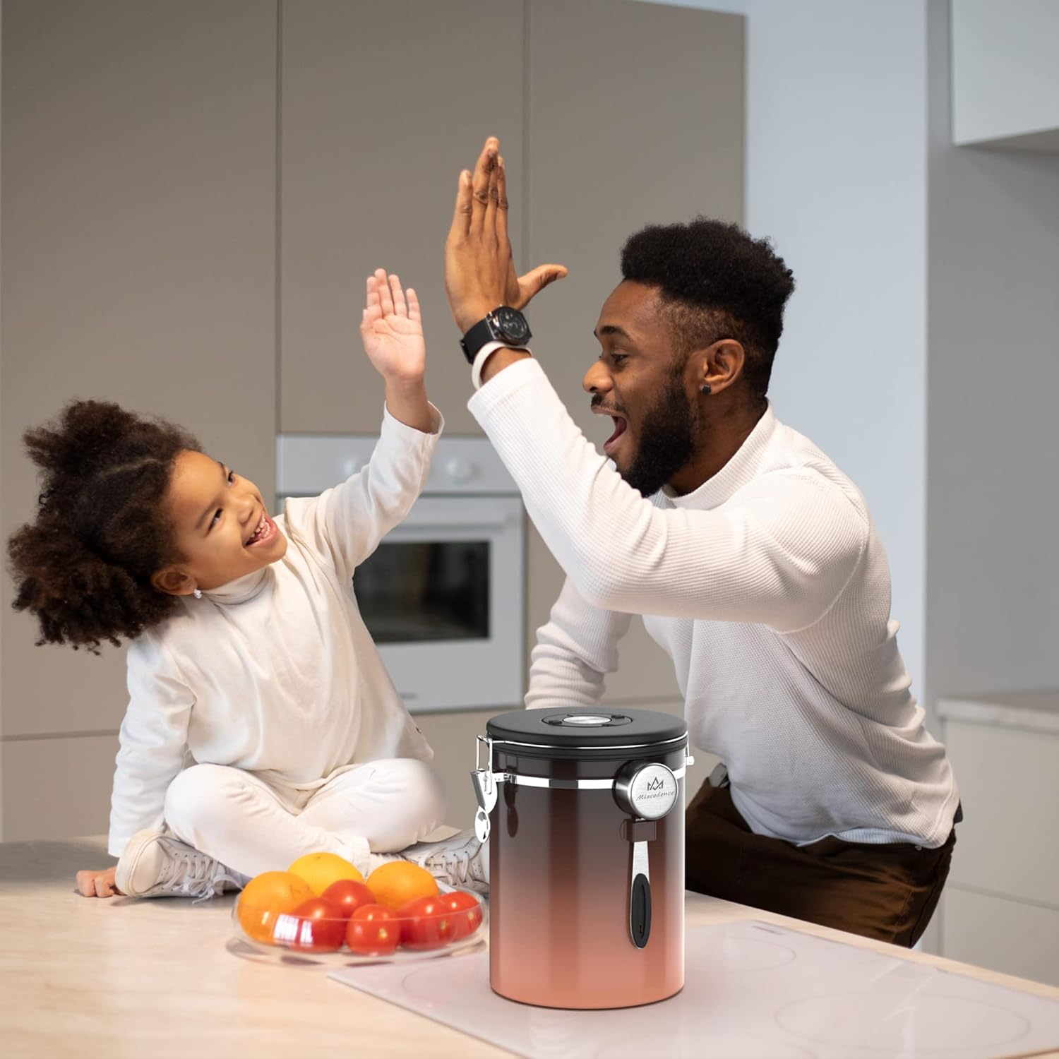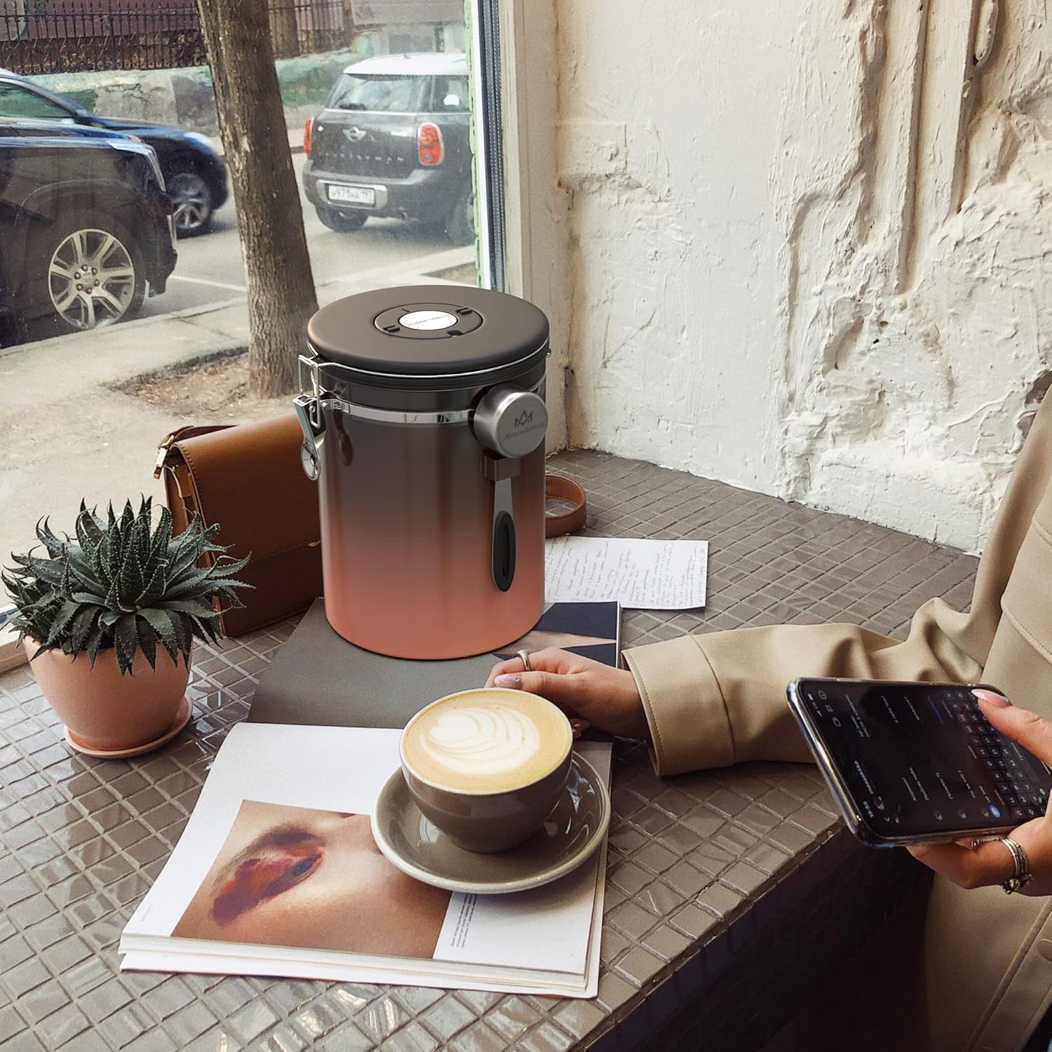35OZ Coffee Canister for ground coffee with Date Tracker,copper color 304 Stainless Steel Kitchen Food Airtight storage container for Coffee Beans or Grounds, Tea, Sugar(35oz-Gradient)