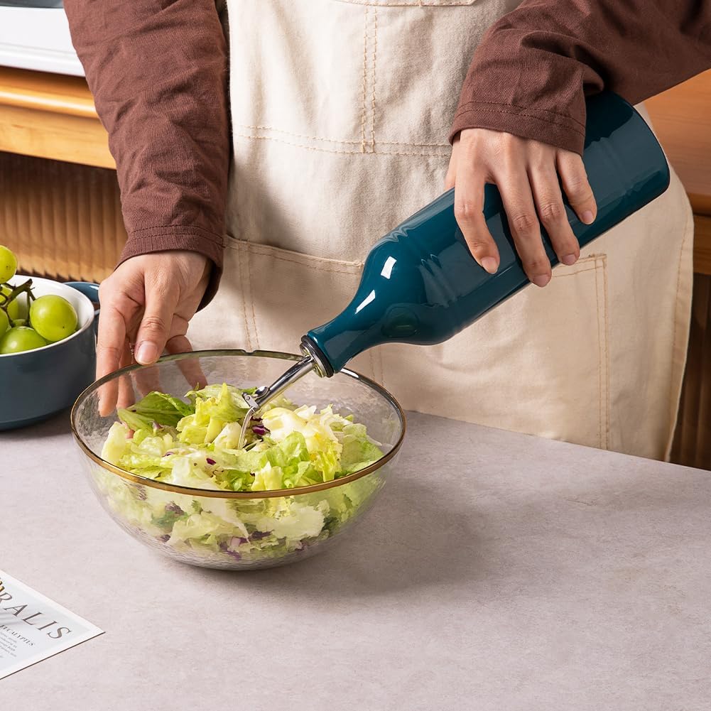 Sweejar Large Ceramic Olive Oil Dispenser Bottle, Opaque Oil Cruet Protects Oil to Reduce Oxidation, Suitable for Storage Oil, Vinegar, Soy Sauce & Other Liquids, Pack of 1, 24 Fl Oz (Teal Green)