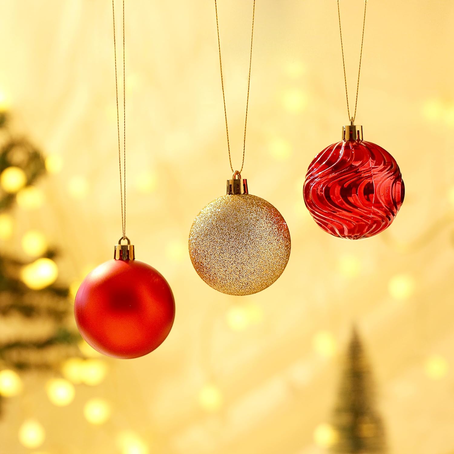 - Vibrant & Eye-Catching: Boasting a variety of beautifully designed styles, these Christmas ball ornaments showcase a stunning color palette that will effortlessly enhance your tree and create a captivating holiday atmosphere.