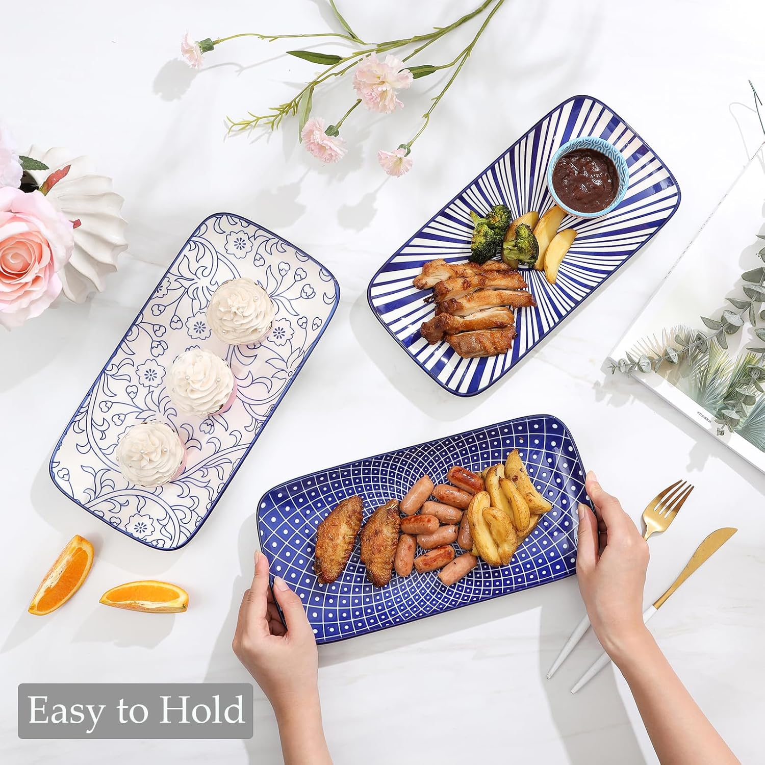 - LONG SLIM PLATTERS, MULTIPLE USES - Our Selamica 12-Inch SERVING PLATTERS are large enough to hold more food, perfect for serving cupcakes, desserts, salad, appetizers, cookies, sushi, fruits, snacks, baked goods, etc. Widely used for buffets, weddings, birthday parties, holidays, Motherโs Day, Christmas, and social events.
