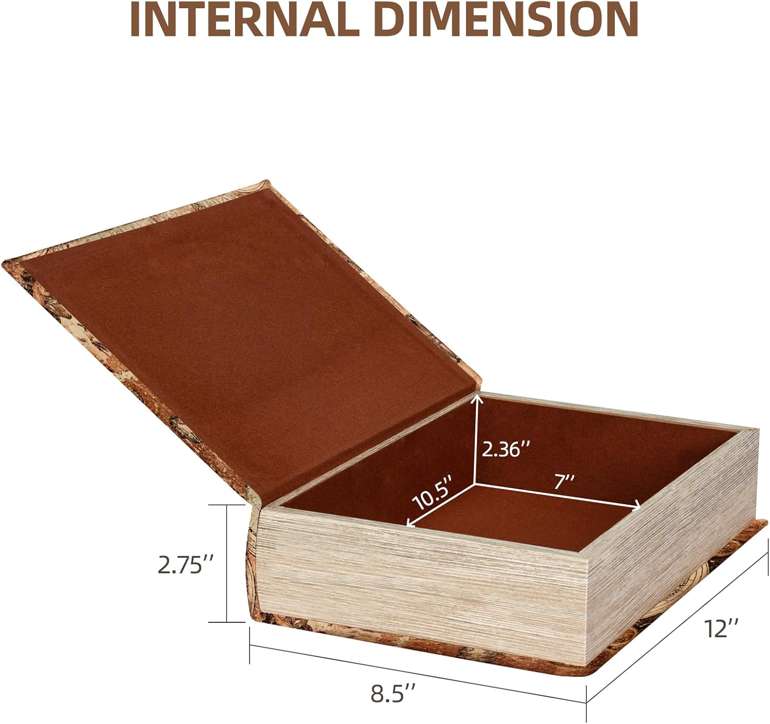 - Large Hidden Storage Compartment (12” x 8.5” x 2.75”) Spacious interior (10.5” x 7” x 2.36”) securely stores jewelry, letters, keys, or small valuables—ideal for discreet organization or creative home accents.