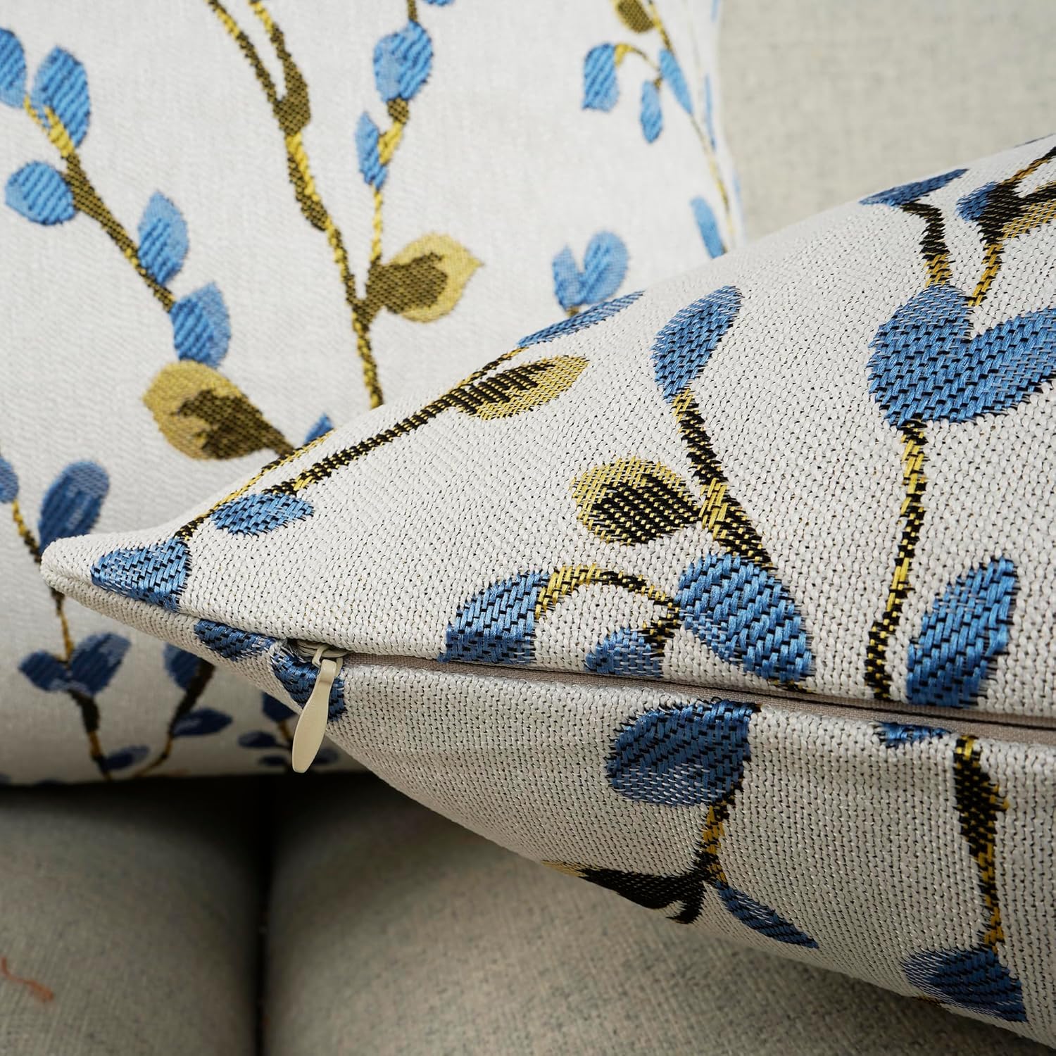 YOUR SMILE Classical Embroidery Jacquard Blue Square Decorative Throw Pillow Case Cushion Cover,12x20 inch