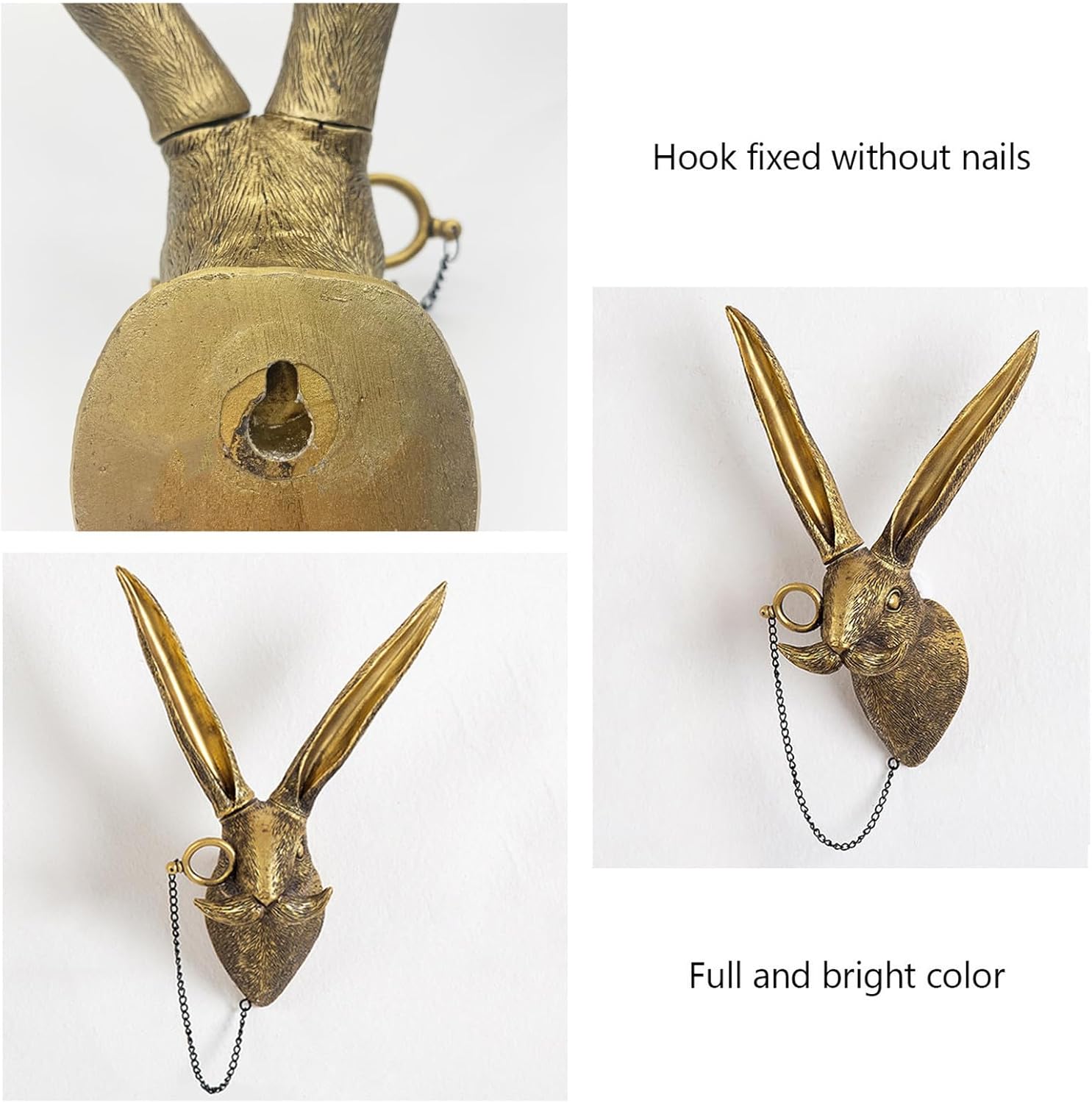 GUASDIE Animal Heads Wall Decor, Faux Deer & Rabbit Heads, Resin Animal Wall Hanging Decoration for Living Room, Bedroom & Kitchen Gift
