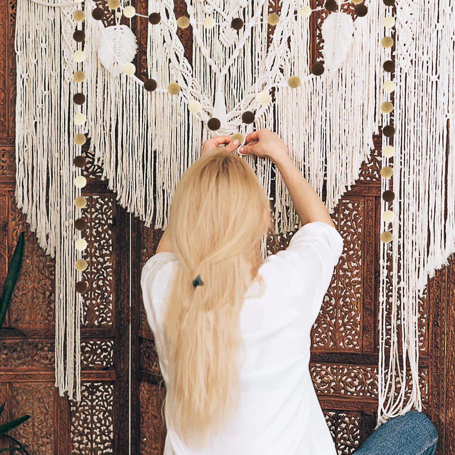- OCCASIONS: Vintage modern style cute kawaii lovely special design, adding a warm rustic feel. It's easy to hang and can be hung anywhere, perfect funky eclectic decor for home, office, kids playroom, students classroom. Our small little felt ball ornament garland is a great Boho Christmas decorations garland for indoor home, outdoor yard garden, living room, bedroom, stair railing, fireplace, ceiling, wall, door, window, gift basket, tree, mantle, carnival photo prop, boho nursery decor.