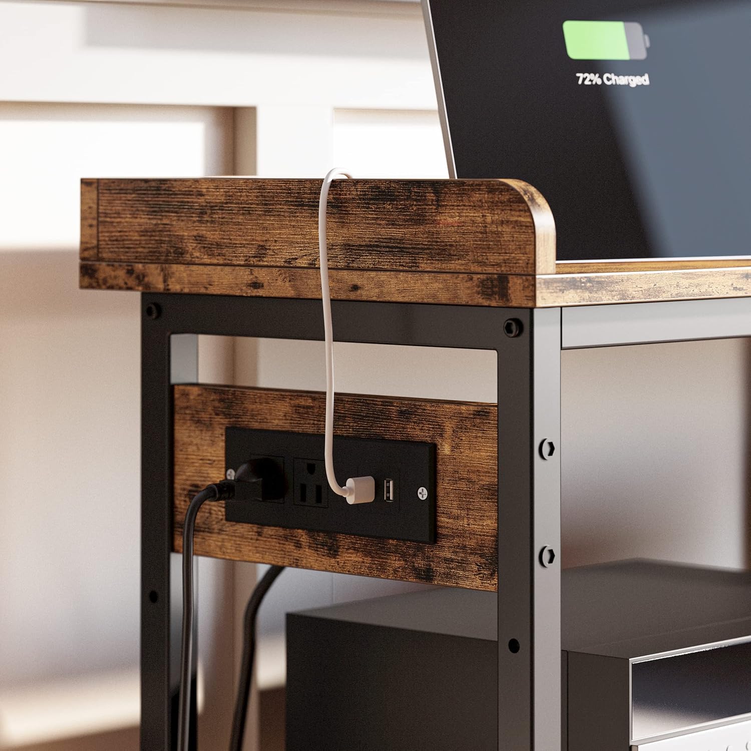 IRONCK Console Table, Sofa Table with Power Outlet, Farmhouse Hallway Table for Entryway, Living Room, Height Adjustable, Easy Assembly, Rustic Brown,55"