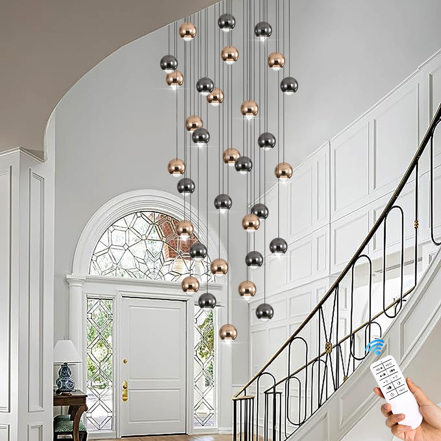 - 【Smart Modern Chandelier】:It is equipped with a remote control and APP control for seamless dimming between warm white (2700K) and cold white (6000K),as well as adjustable brightness ranging from 5 to 100 percent.