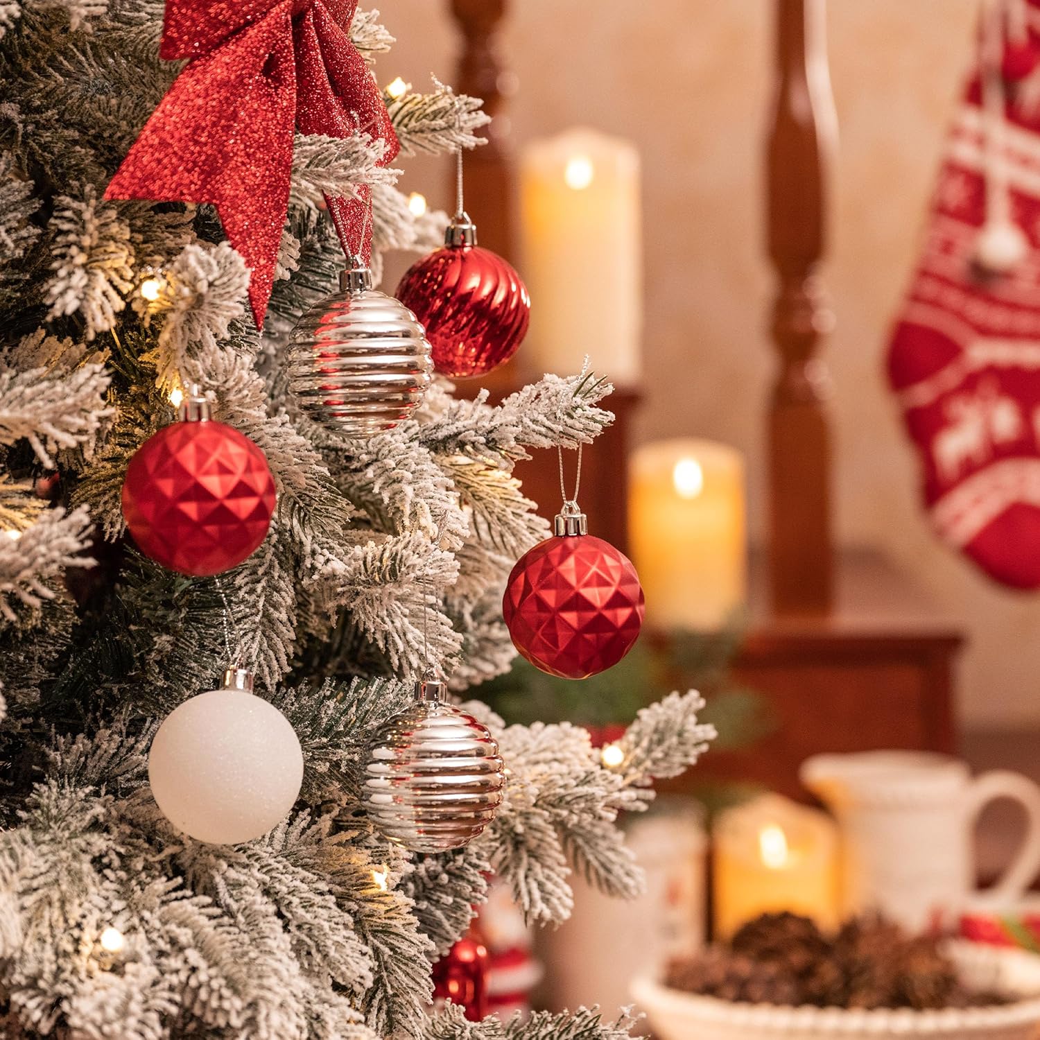 Valery Madelyn Christmas Ornaments Tree Decorations Set for Fall Halloween, 24ct Red White Shatterproof Ball Ornaments, 2.36" Hanging Ornament Bulk for Xmas Holiday Party Decor