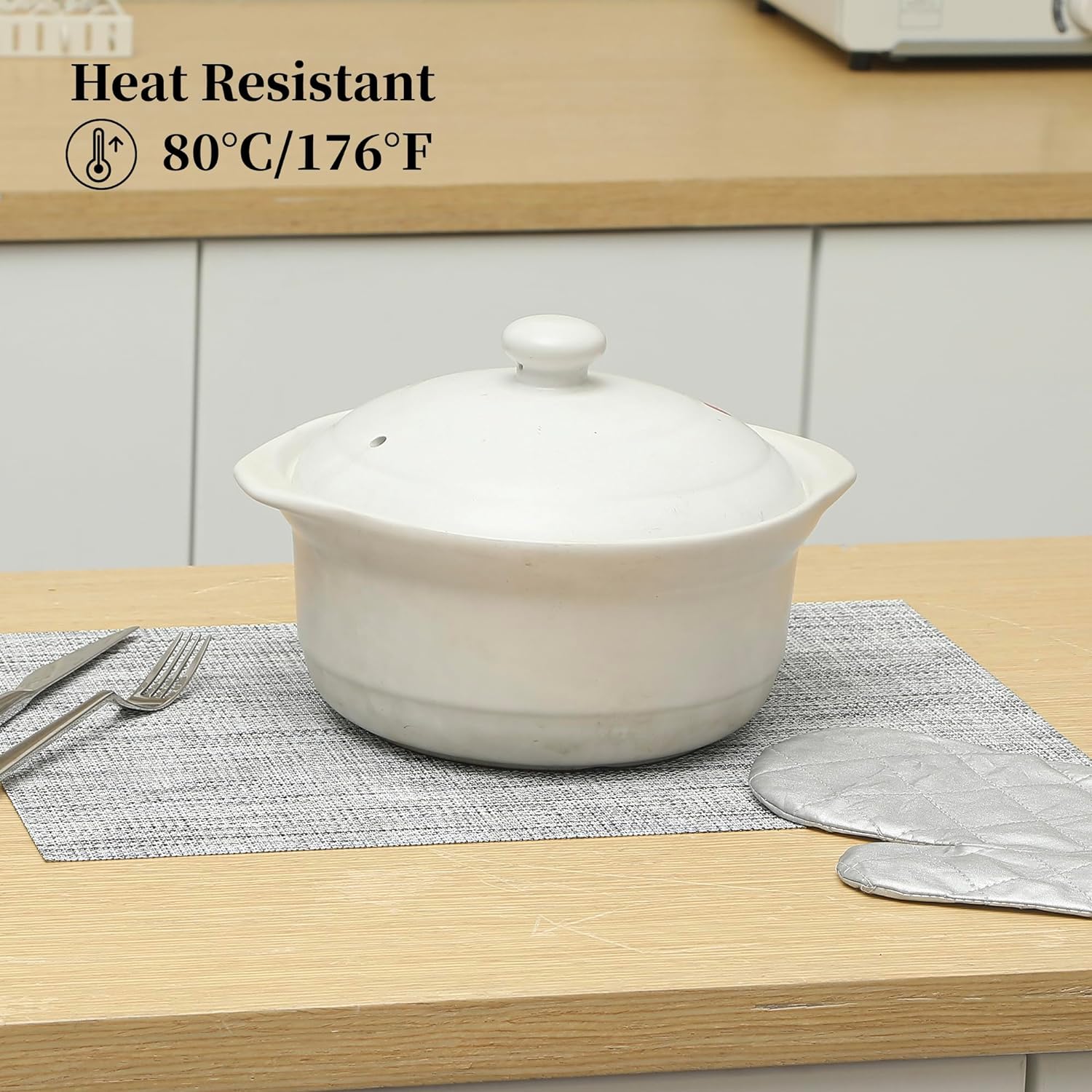 - Protects Your Table: Keep your table safe from scratches and spills with our heat-resistant placemats. They can withstand temperatures up to 176℉(80℃) and help keep food warm. Add style to your dining setting while ensuring table protection.