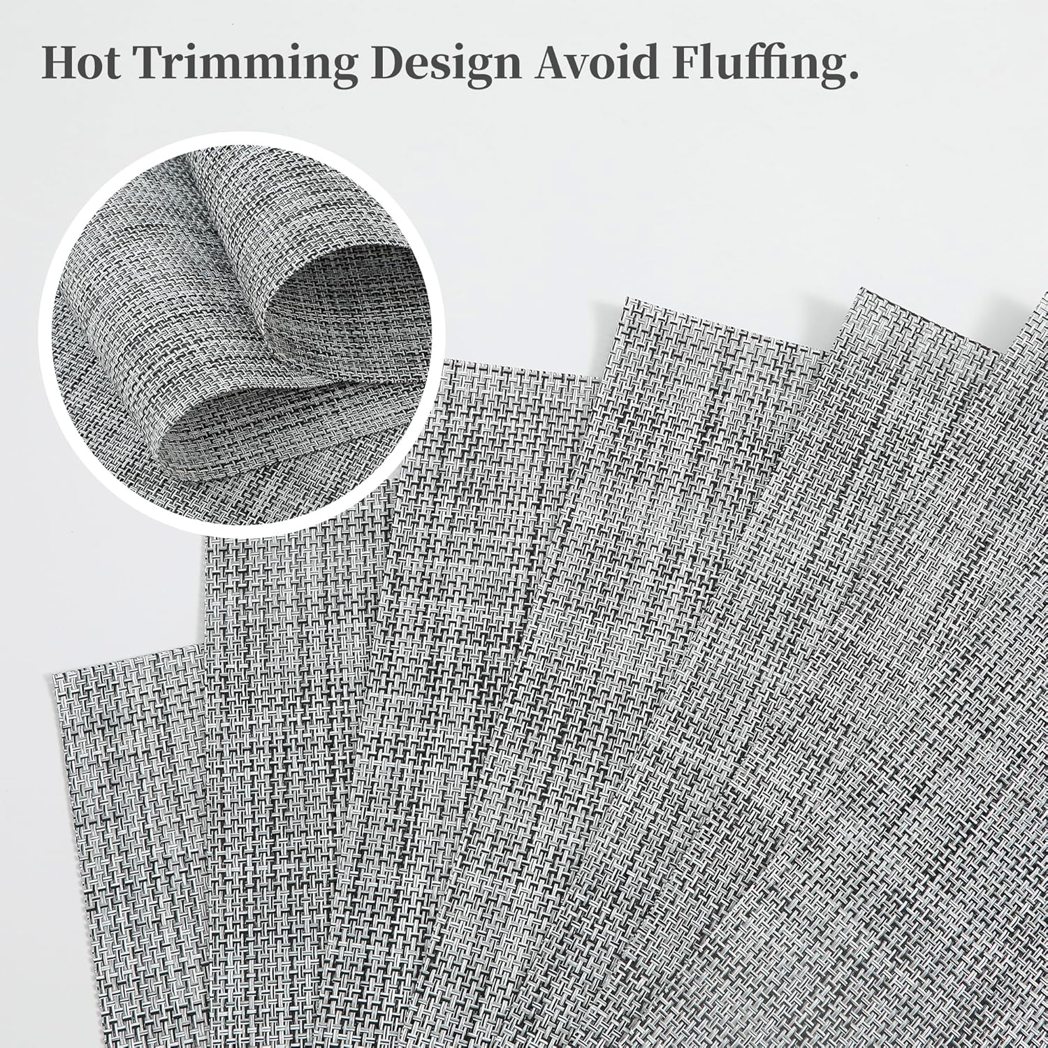 Leetaltree Linen Grey Placemats Set of 6 - Heat Resistant Non-Slip Place mats for Dining Table, Washable Durable PVC Vinyl Woven Table Mats(Linen Grey, 6)