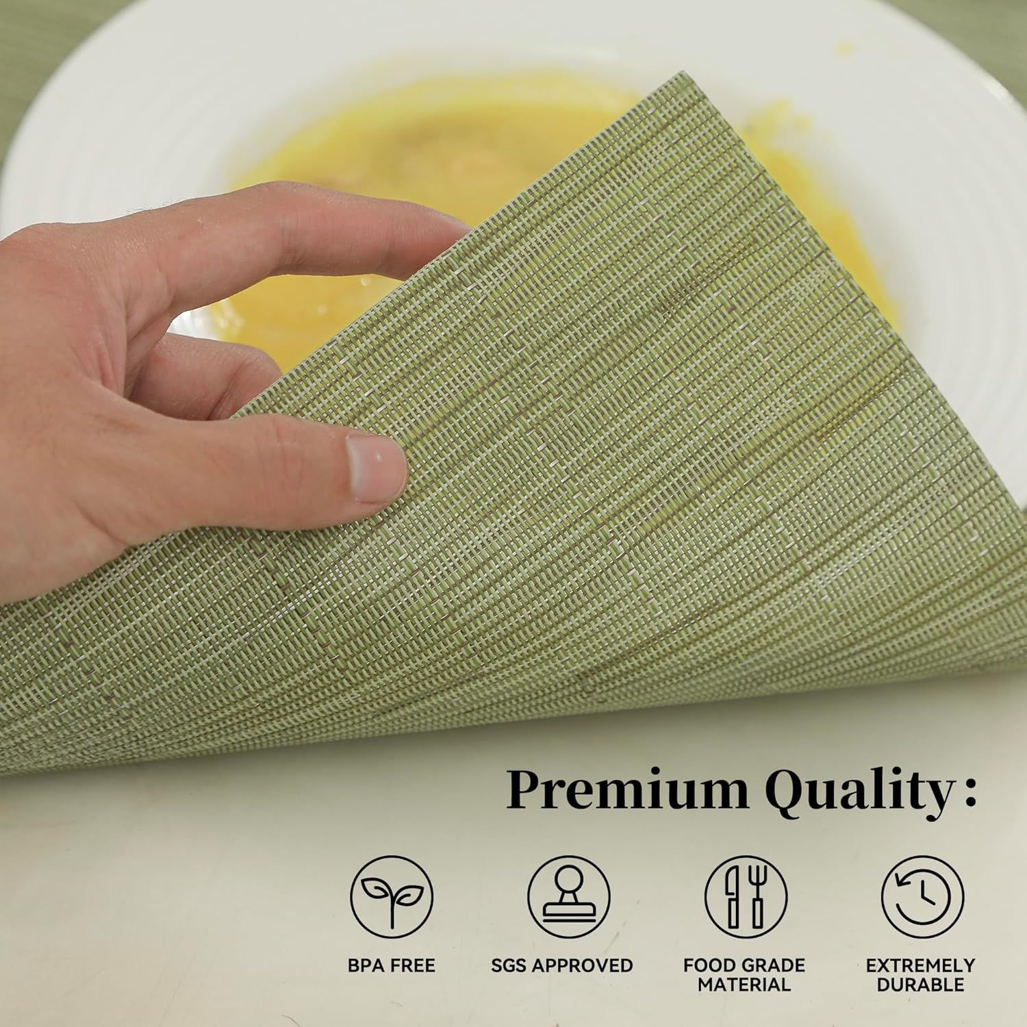 Leetaltree Pea Green Placemats Set of 4 - Heat Resistant Non-Slip Place mats for Dining Table, Washable Durable PVC Vinyl Woven Table Mats(Pea Green, 4)