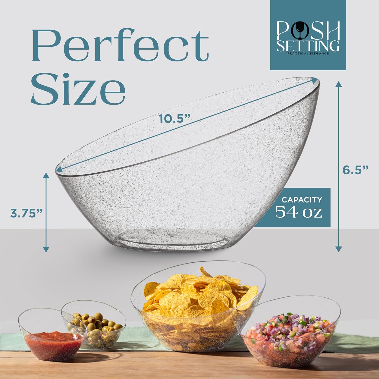 Posh Setting - Silver Plastic Serving Bowls Angled & Candy - Salad & Fruit Serving Bowls Wedding - 8 OZ, Glitter, 5 Pack