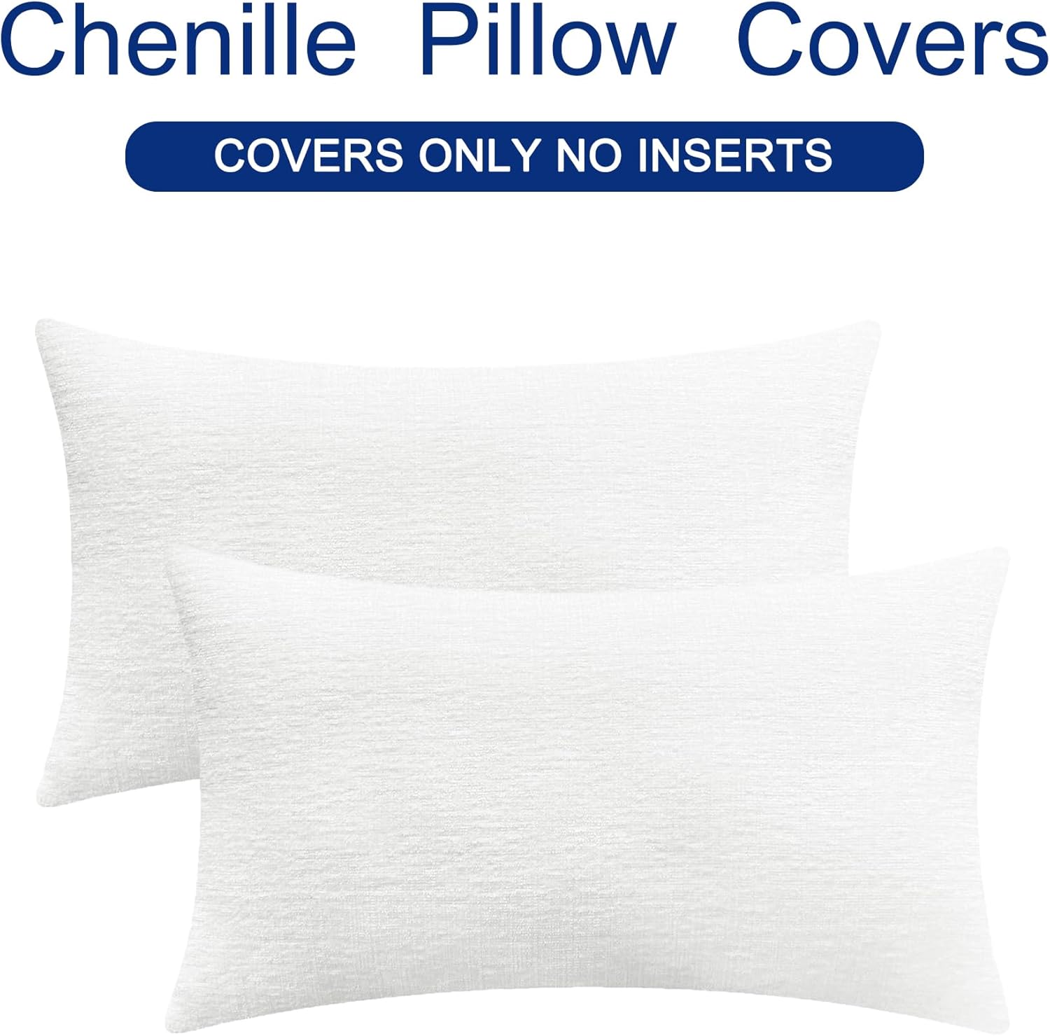 CaliTime Throw Pillow Covers Decorative 16 X 26 Inches Pack of 2 Cozy Chenille Cushion Cases for Couch Sofa Bed Living Room Home True White