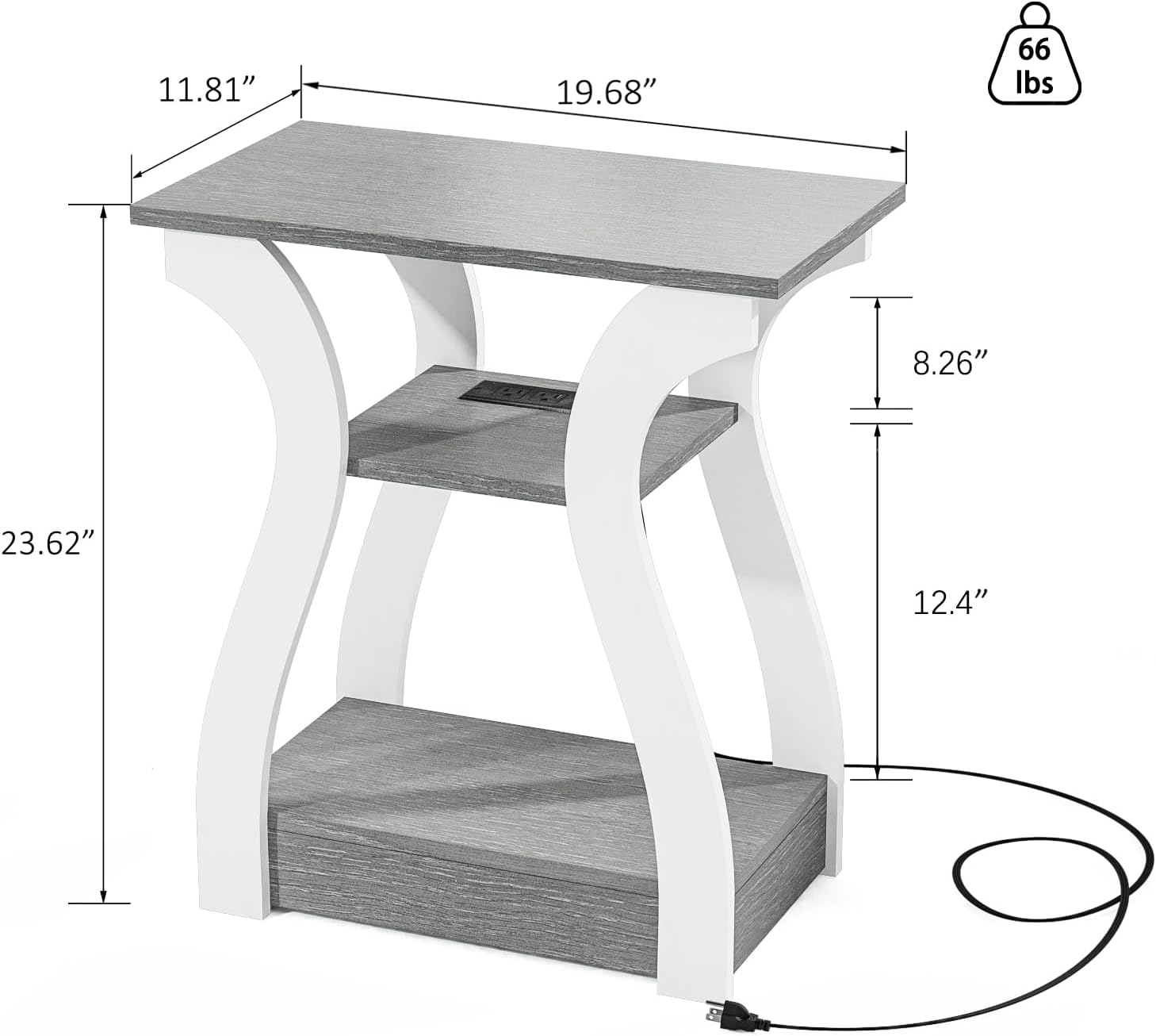 End Tables Living Room Set of 2,Grey End Table with Charging Station,Grey Side Table, Nightstand for Bedroom, 3 Tier End Table with Storage Shelf for Living Room