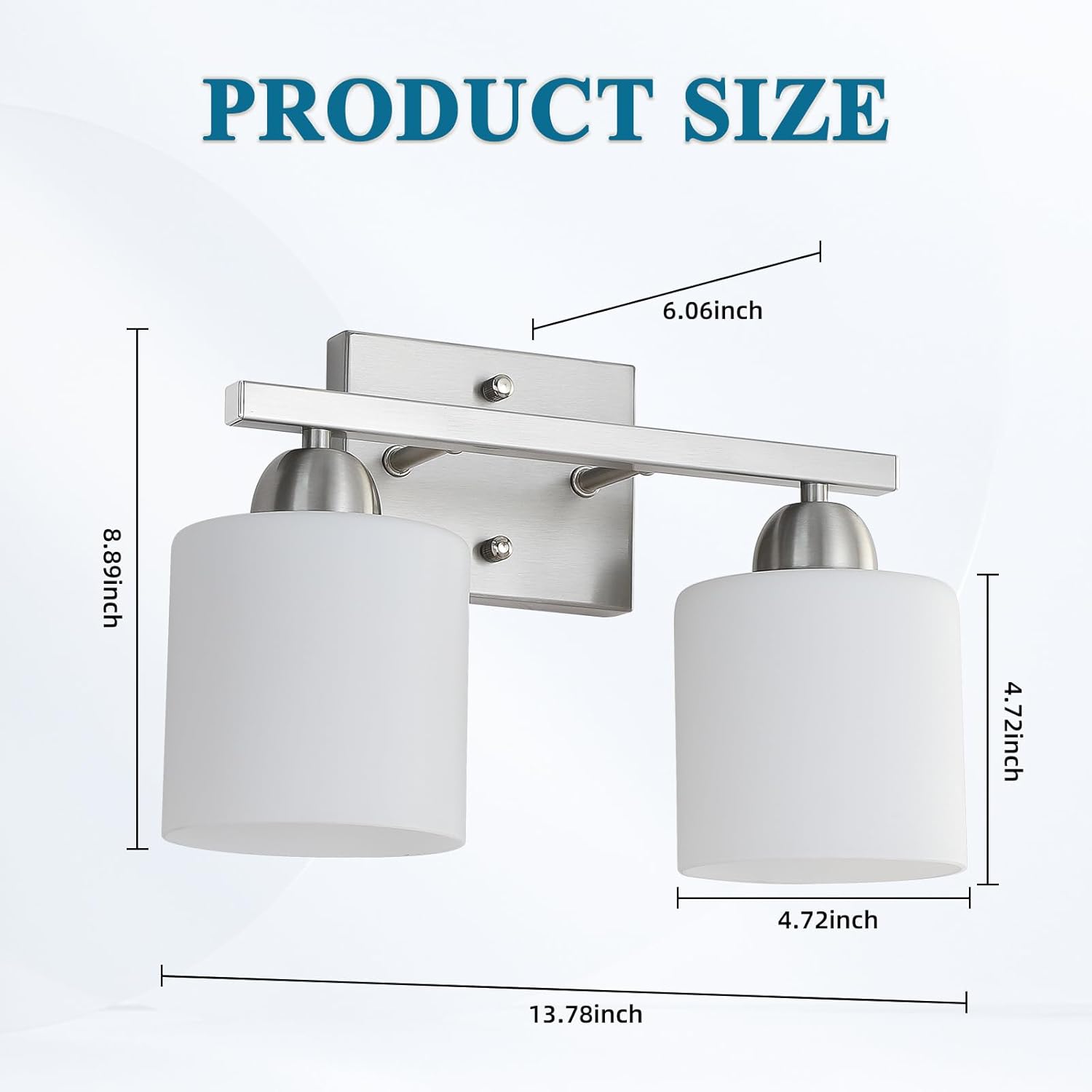 Stainless Steel Milk Glass Vanity Lights for Bathroom, 2 Light Brushed Nickel Bathroom Light Fixtures Over Mirror, Ceramic E26 Sockets Wall Mounted