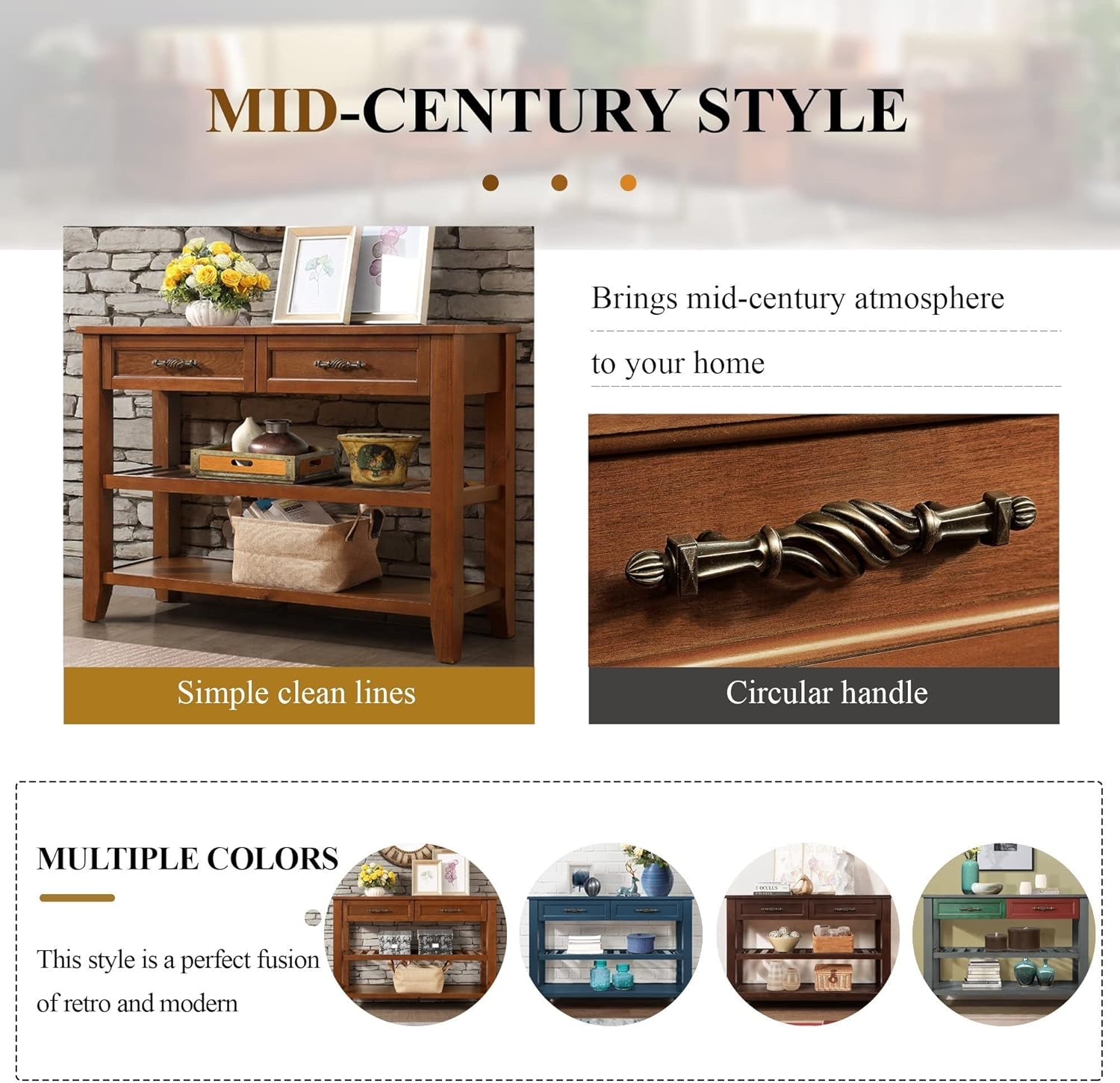 Solid Wood Console Table Entryway Table with Storage Drawers and Shelves Sofa Tables (42" Brown)