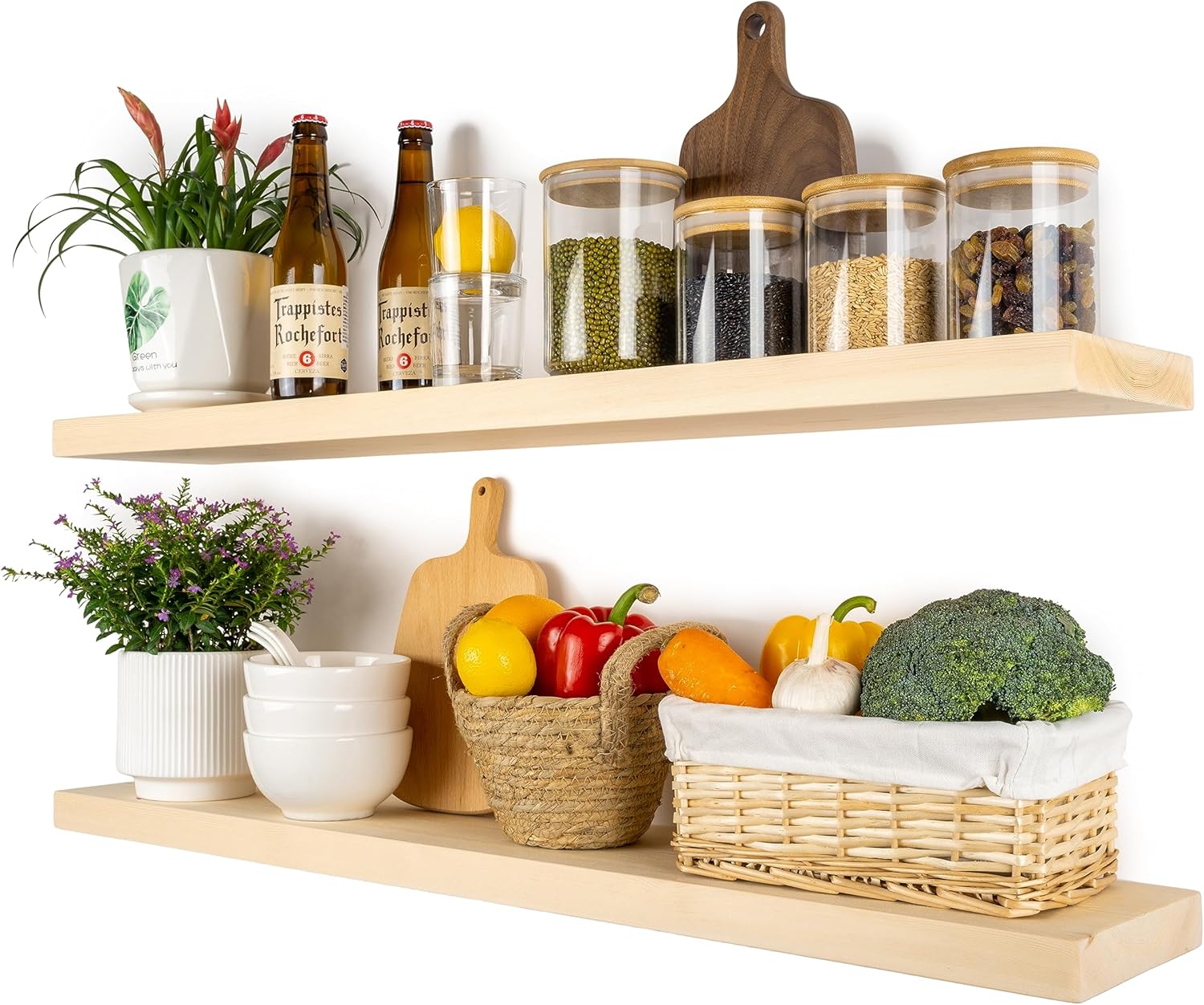 - MODERN RUSTIC LOOK - The floating shelves are made of natural pine, and the wood has different nodes and grains, so the color of each shelf may be slightly different, but equally stunning!