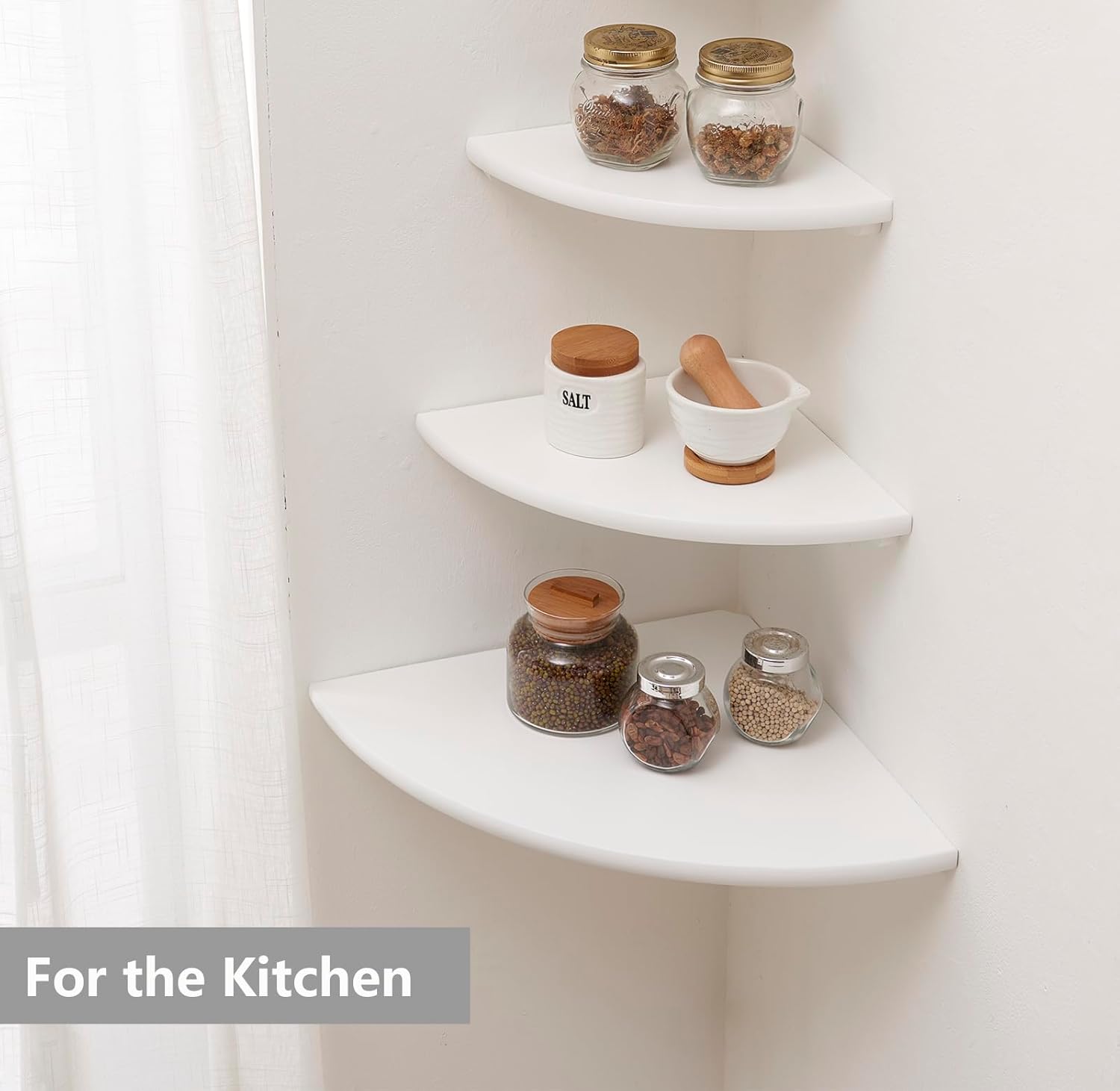 - ăFunctional Corner Wall Shelfăfloating corner shelf practical wall space saver, and very useful for adding extra storage space to store and reorganize small items in your bathroom, bedroom, living room, kitchen, and more, it is a nice way to clear up the clutter