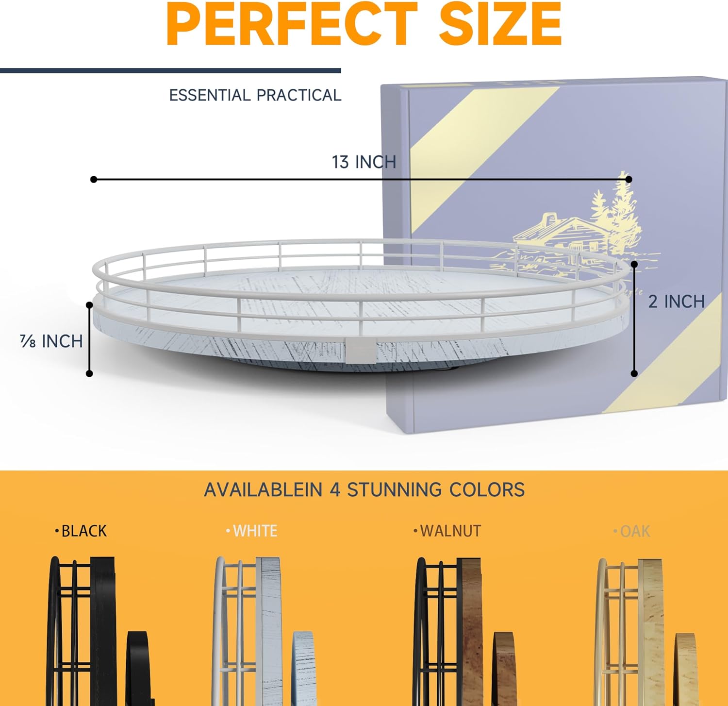 13" Oak Bathroom Vanity Tray Turntable for Perfume Candle, Round Wooden Decorative Tray for Kitchen Sink Countertop Organizer, Bathroom Counter Organizer for Skincare Makeup, Rustic White
