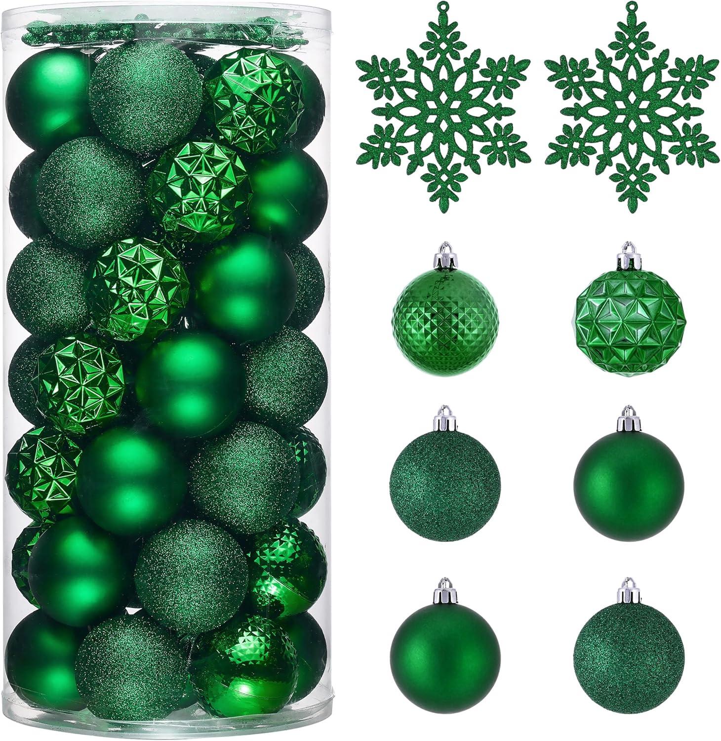 Valery Madelyn Christmas Tree Decorations Ornament Set for Fall Halloween, 50ct 2.36 Inches Emerald Green Shatterproof Christmas Ball Ornaments Hanging Xmas Holiday Party Decor