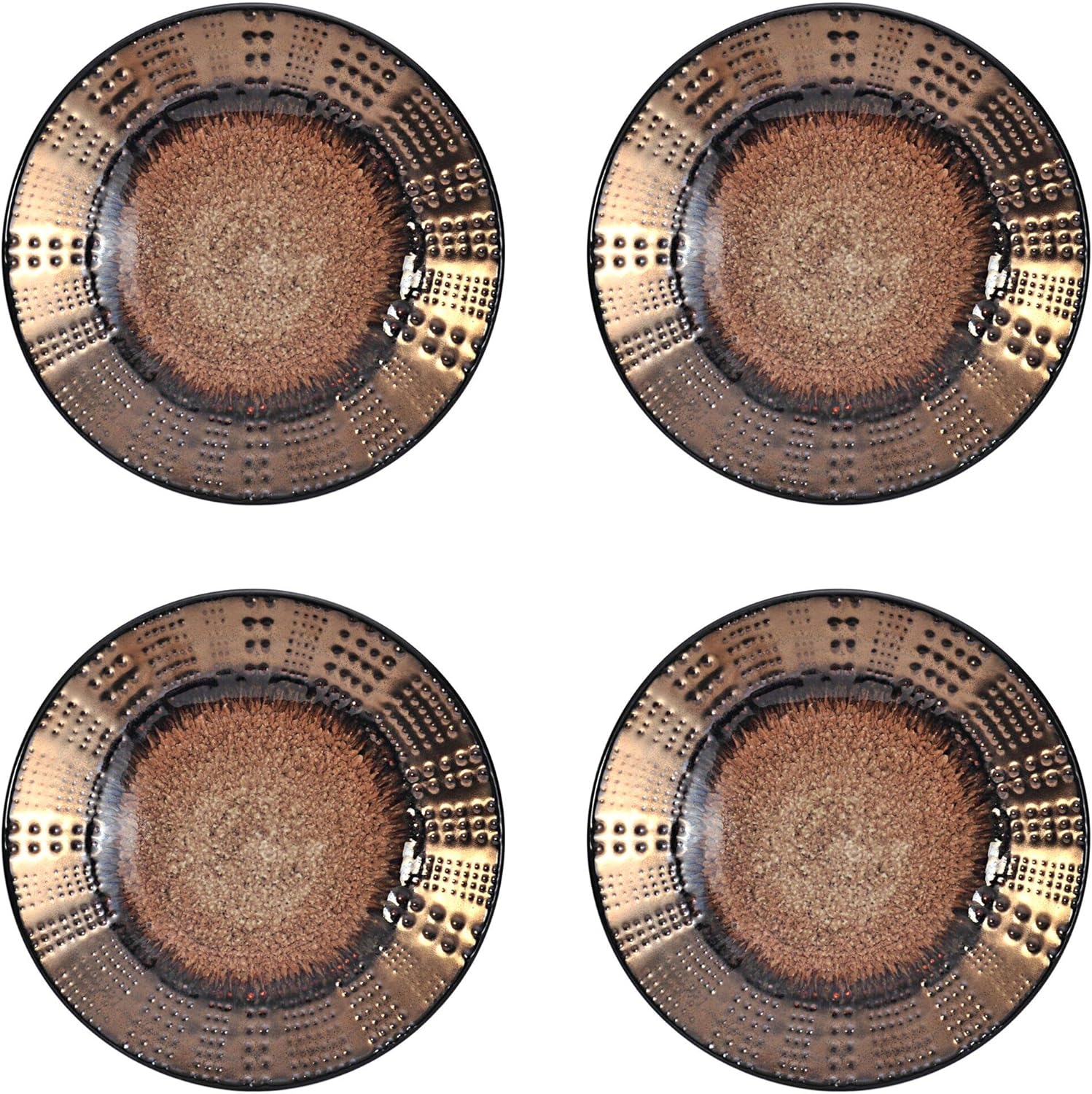 - Product 3: DRAMATIC AND MODERN: Verona dinnerware features a combination of speckles, dots, and linear striations in rich earth tones, with contrasting smooth centers and metallic rims