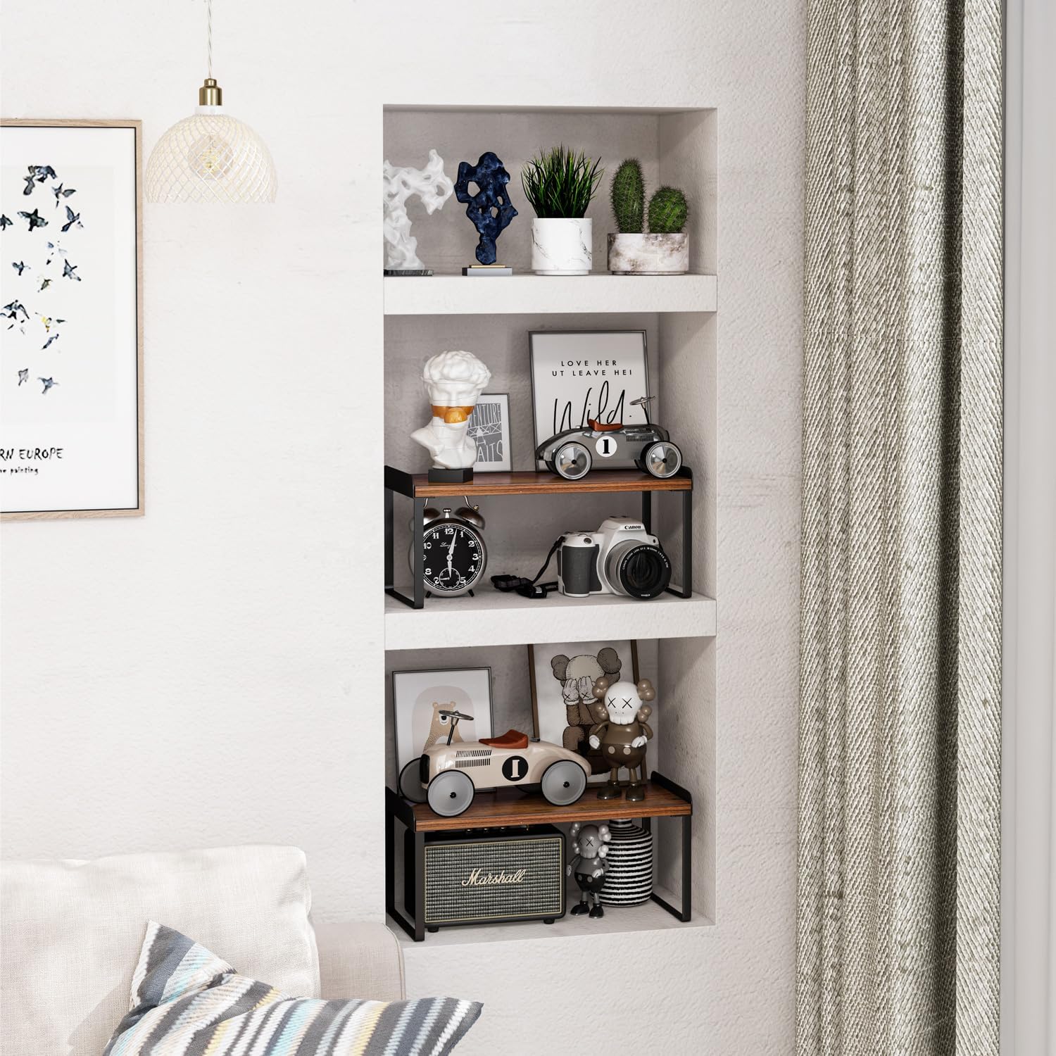 Mitus Shelf Organizer and Storage, Tiered Wood Cabinet Rack for The Kitchen Counter, Bathroom Counter, Pantry Cupboard, Office Desk Bookshelf, 16" Wide Walnut Brown and Black