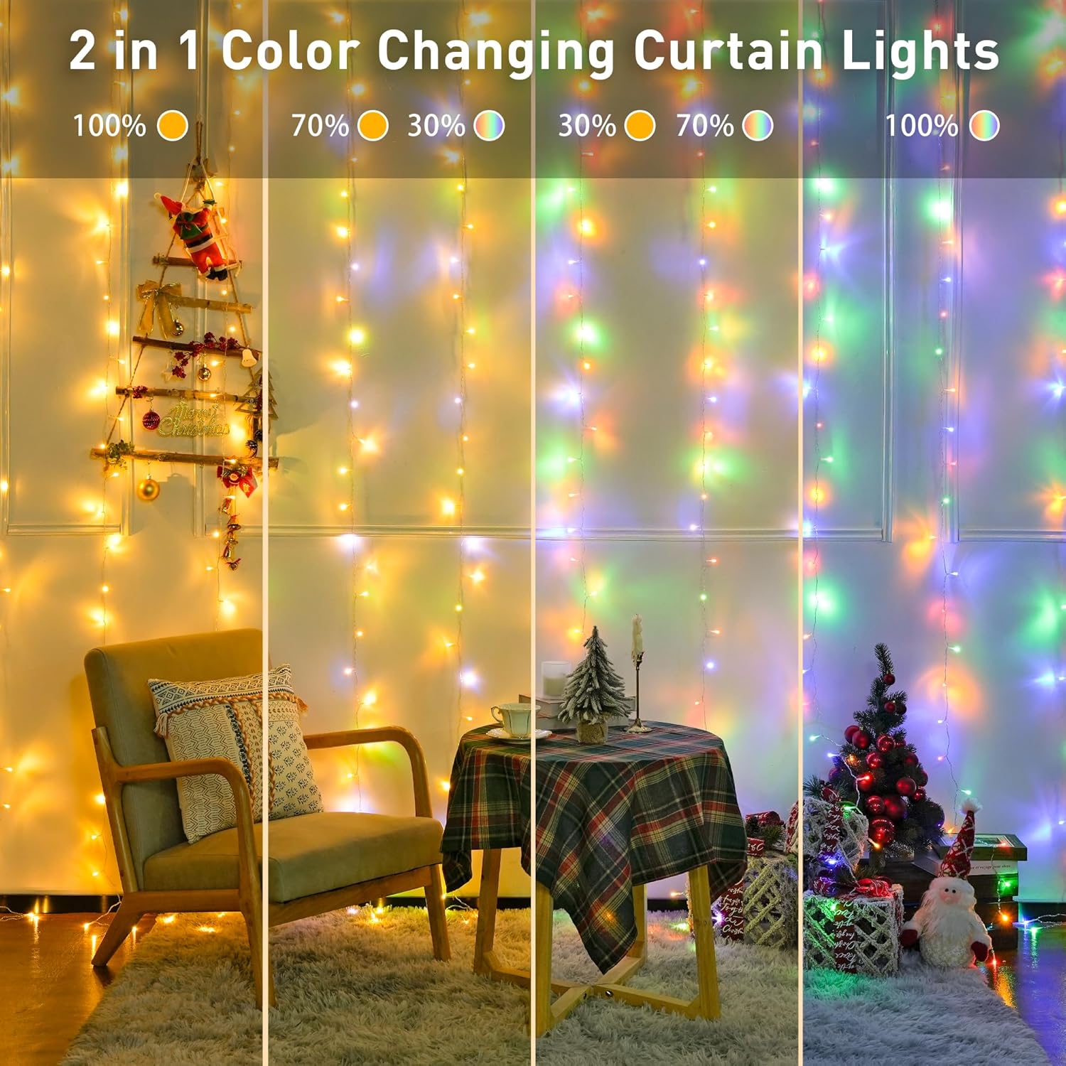 - Dual Color Changing: Our lights can effortlessly switch between warm white and colorful tones for a unique visual experience.