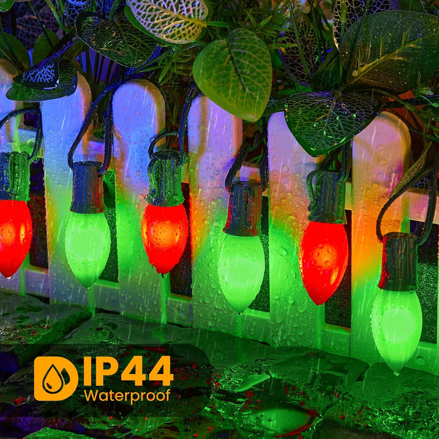 - Applicable to a Variety of Occasions: C9 LED Christmas lights outdoor are suitable for indoor and outdoor daily and holiday decorative accessories, ideal for commercial grade buildings, cafe, bistro, porch, patio, gazebo, garden, backyard and many other decorative options, such as Christmas, wedding, party, camping and other festive and leisure activities necessary for decoration