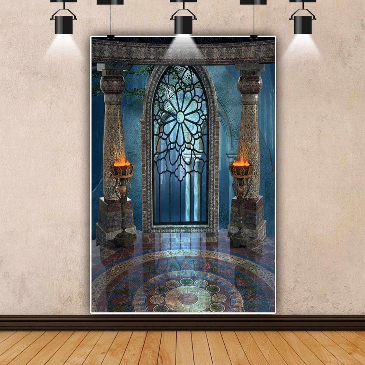 Renaiss 4x6ft Medieval Castle Backdrop for Photoshoot Portrait Pillar Torch Gothic Stone Tower Ancient Old Fortress Interior Photography Background Halloween Party Decor Wallpaper Photo Studio Props