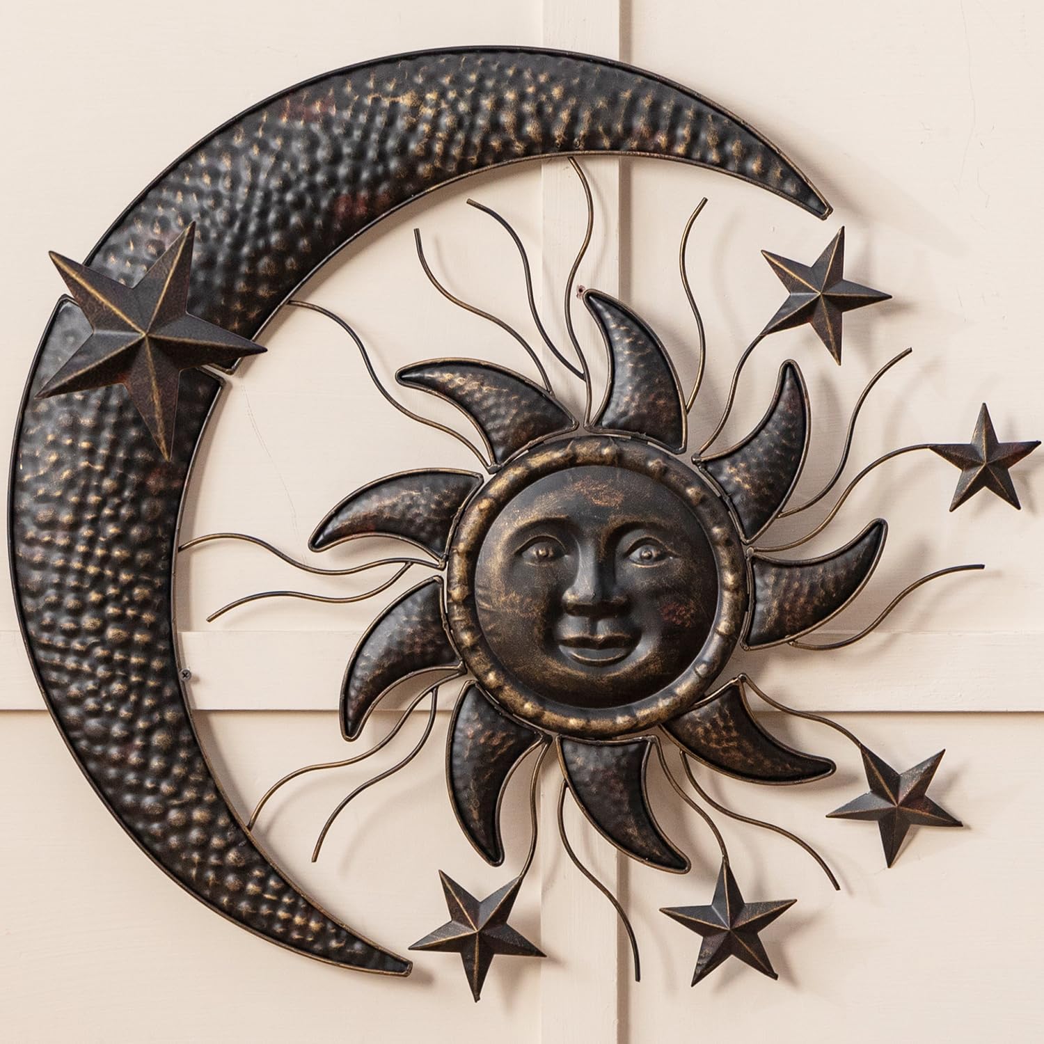 - π High Quality - Immerse your space in the captivating allure of our retro sun moon stars wall decor. Meticulously crafted from durable metal with a rust-resistant coating, this masterpiece stands the test of time. Come rain or shine, its vibrant colors won't fade, allowing you to use it for many years to come. Sun art sculpture measures 27"L x 25"W x 1.25"H and weighs 2.13 lbs.