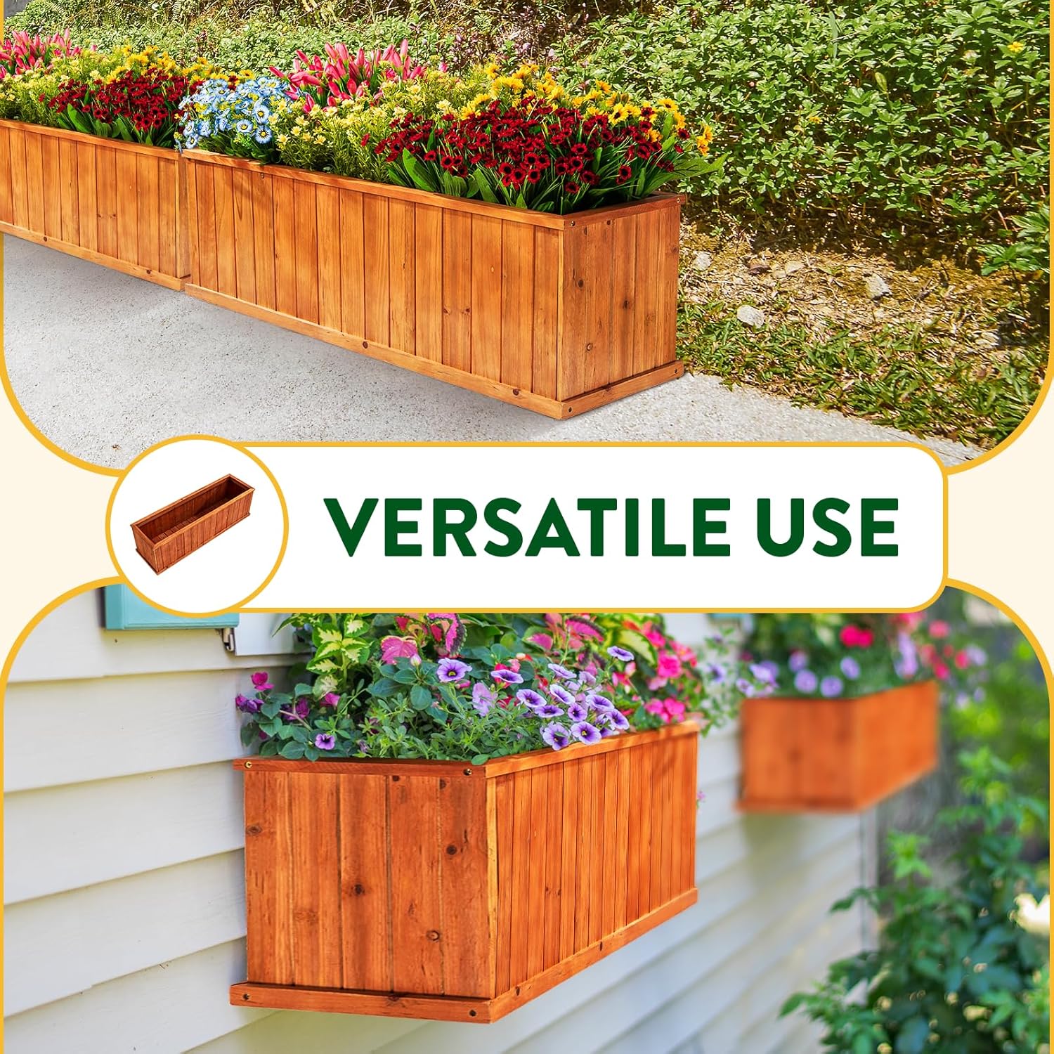 - VERSATILE USE: Our wood plant box outdoor can be used as a planter box as well as a window box, adding a touch of timeless elegance to any balcony, garden, or backyard