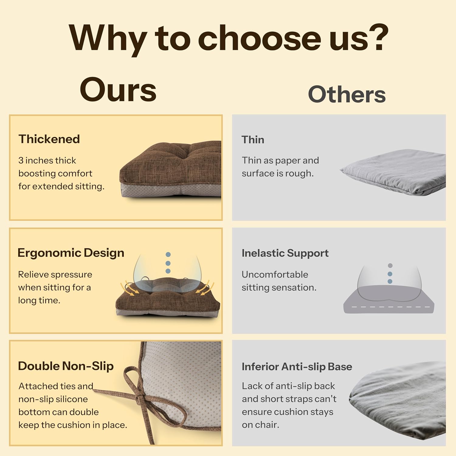 - Versatile Style: Whether you need extra support in the office or want to add a touch of style to your home, our seat cushions for dining chairs are the perfect solution. Use it in dining rooms, home offices, living rooms, bedroom, bars or even breakfast nooks to add comfort and a touch of elegance.