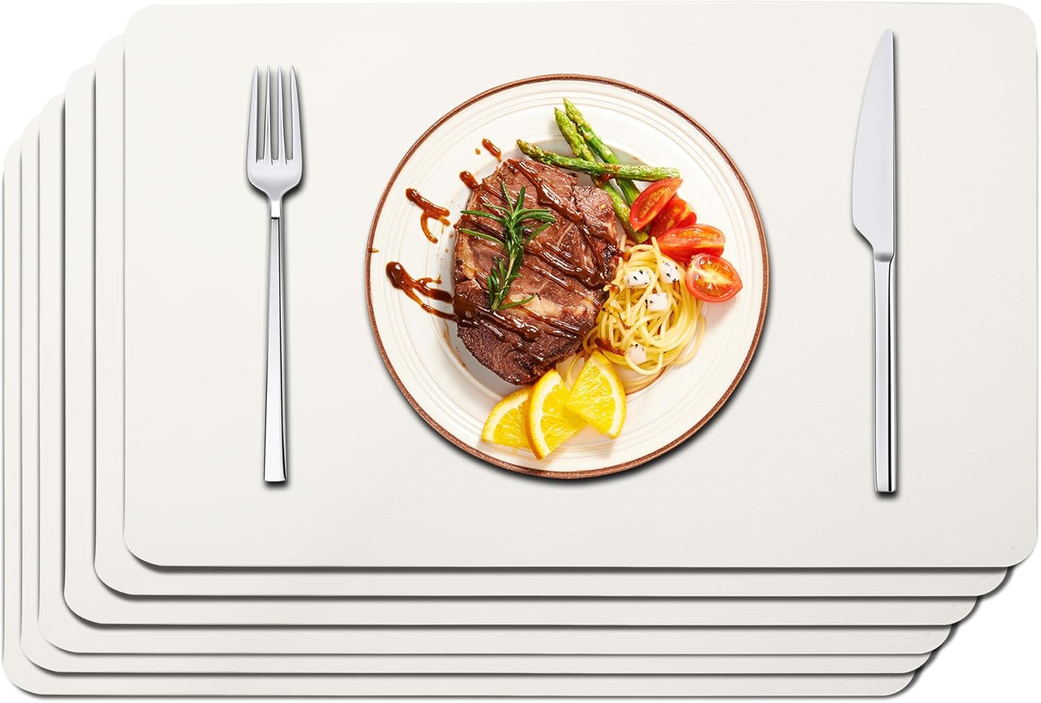 Maxpearl Faux Leather Placemats Set of 6 - Waterproof - Wipe Clean - Heat Resistant - Anti Slip Dining Table Place Mats, Suitable for Indoor & Outdoor Use, 17’’x12’’, Ivory White