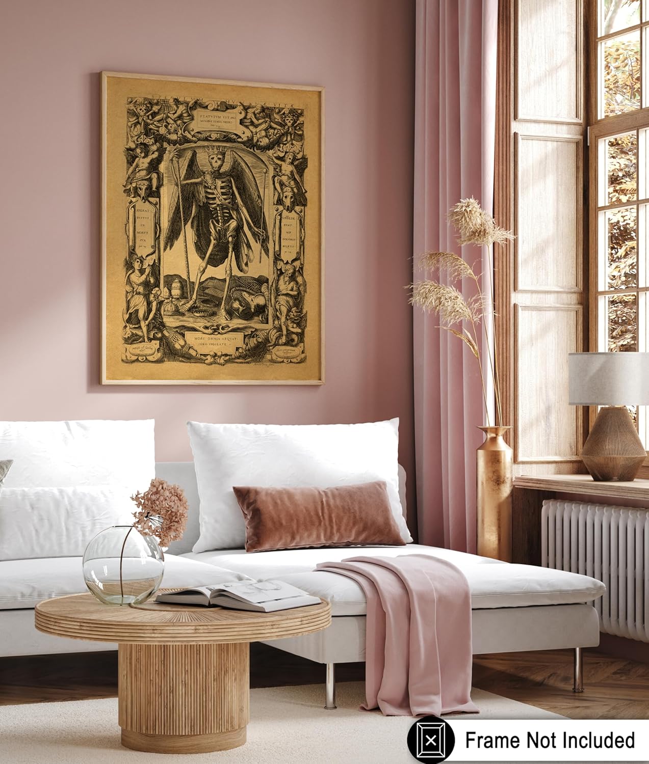 Poster Master Vintage Angel of Death Poster - Grim Reaper Print - Halloween Art - Mirror of Human Life Art - Gift for Men & Women - Gothic Decor for Living Room or Bedroom - 8x10 UNFRAMED Wall Art