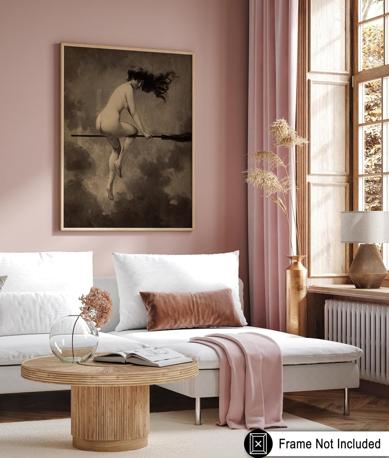 Poster Master Vintage Departure for the Sabbath Poster - Retro Naked Witch Print - Halloween Art - Gift for Men & Women - Gothic Wall Decor for Living Room, Bedroom or Dorm - 8x10 UNFRAMED Wall Art