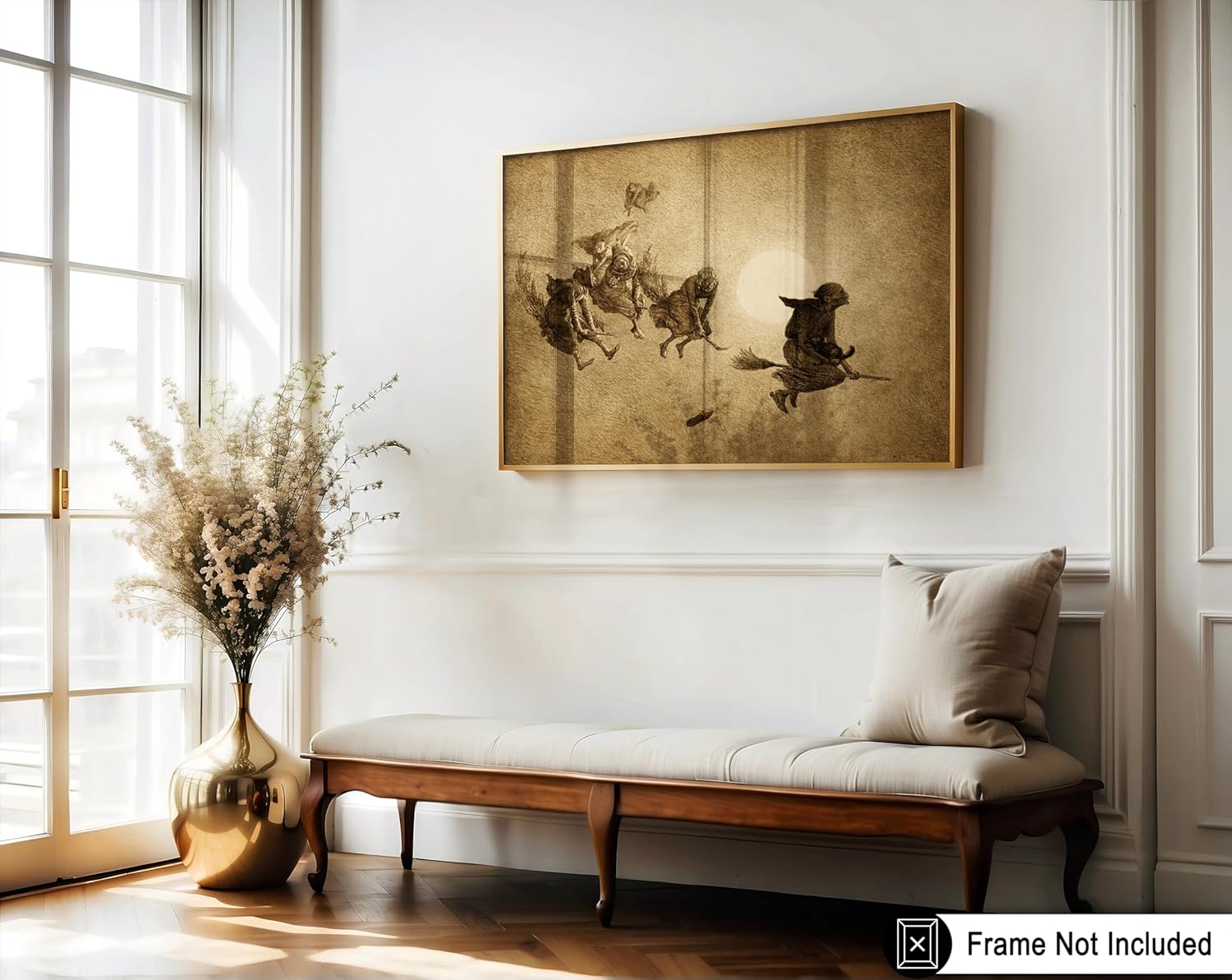 Poster Master Vintage Witches Ride Poster - Retro Flying Witches Print - Halloween Art - Pagan Art - Gift for Men & Women - Gothic Wall Decor for Living Room, Bedroom or Dorm - 16x20 UNFRAMED Wall Art