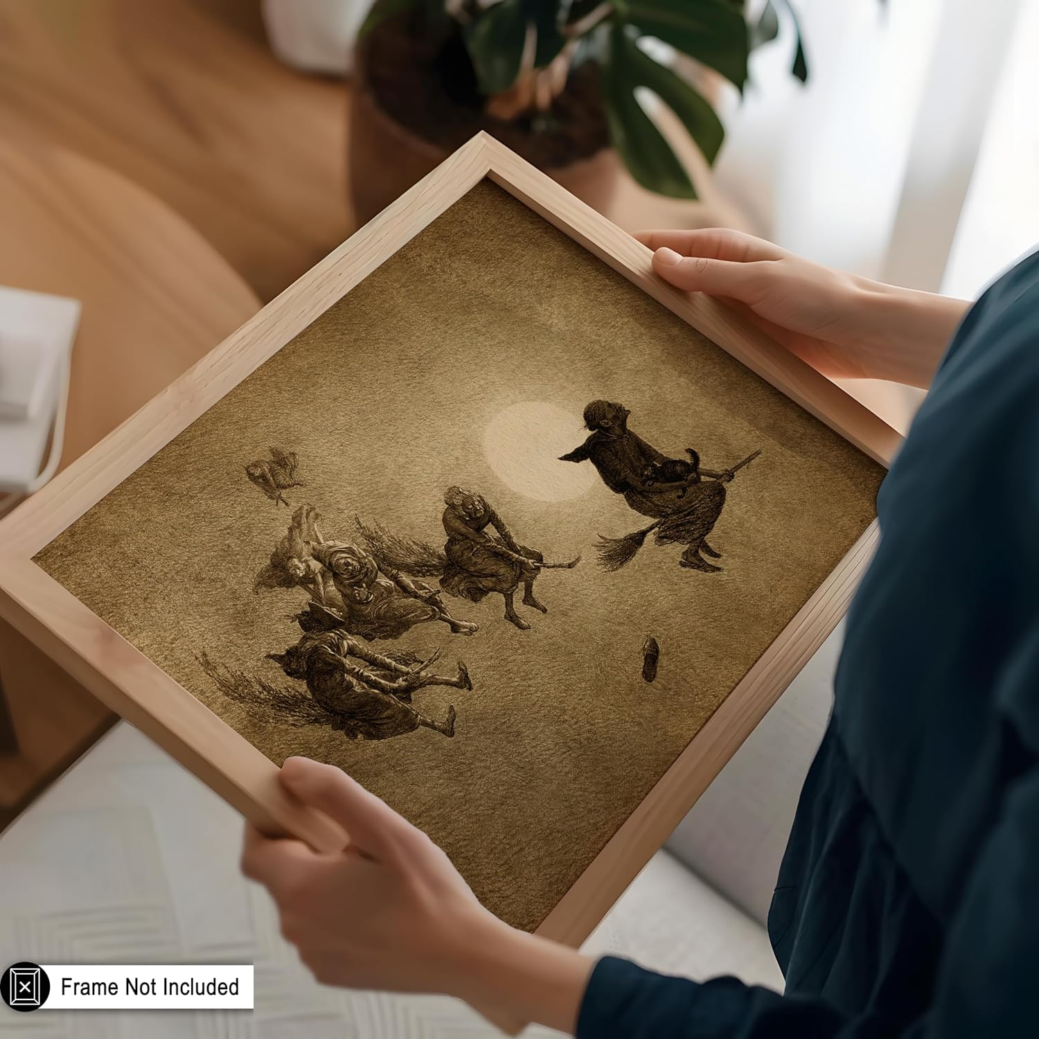 Poster Master Vintage Witches Ride Poster - Retro Flying Witches Print - Halloween Art - Pagan Art - Gift for Men & Women - Gothic Wall Decor for Living Room, Bedroom or Dorm - 11x14 UNFRAMED Wall Art