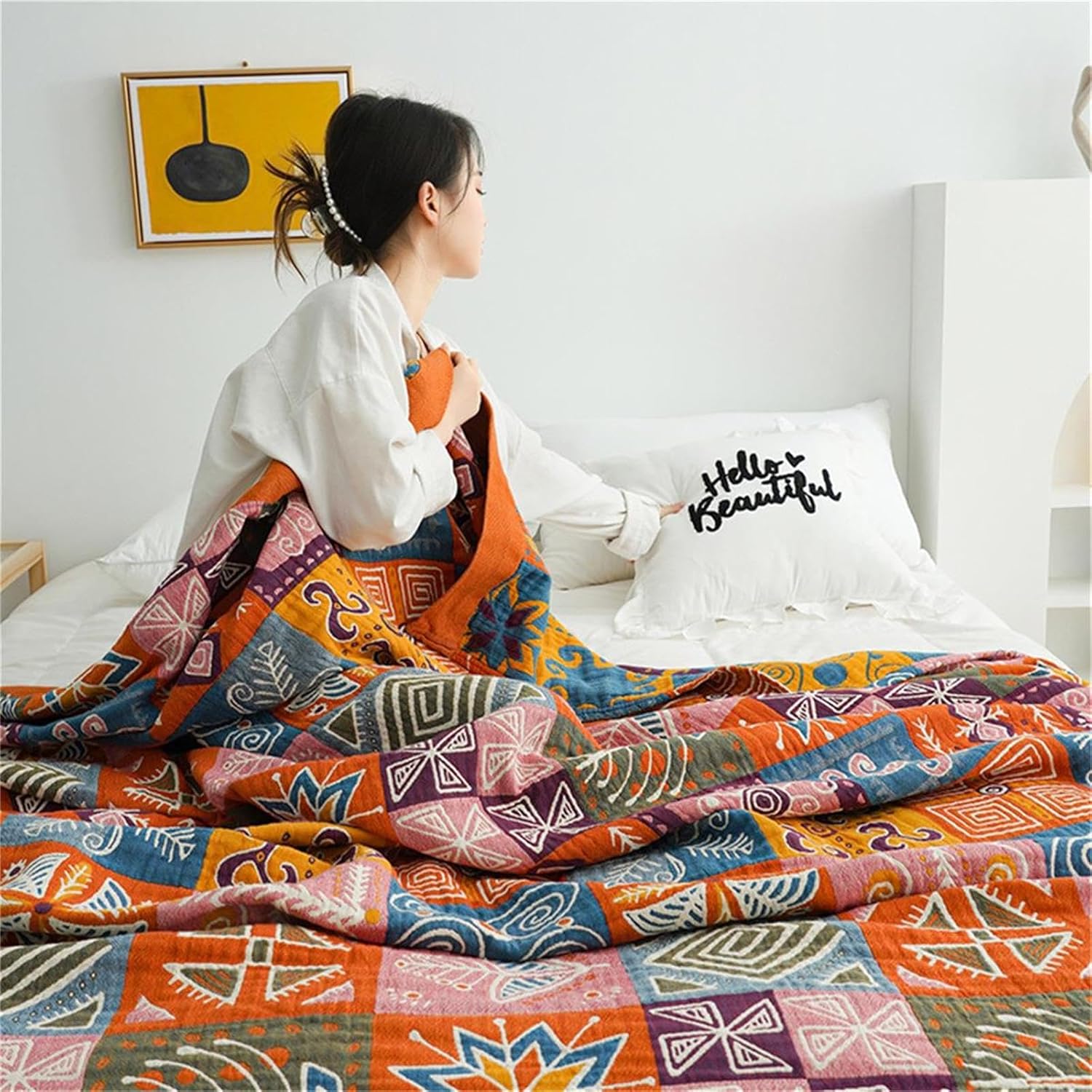 Cotton Throw Boho Blanket for Couch Bed,Cotton Quilted Boho 80''x90'' Muslin Blankets Travel Mexican Super Soft Blanket