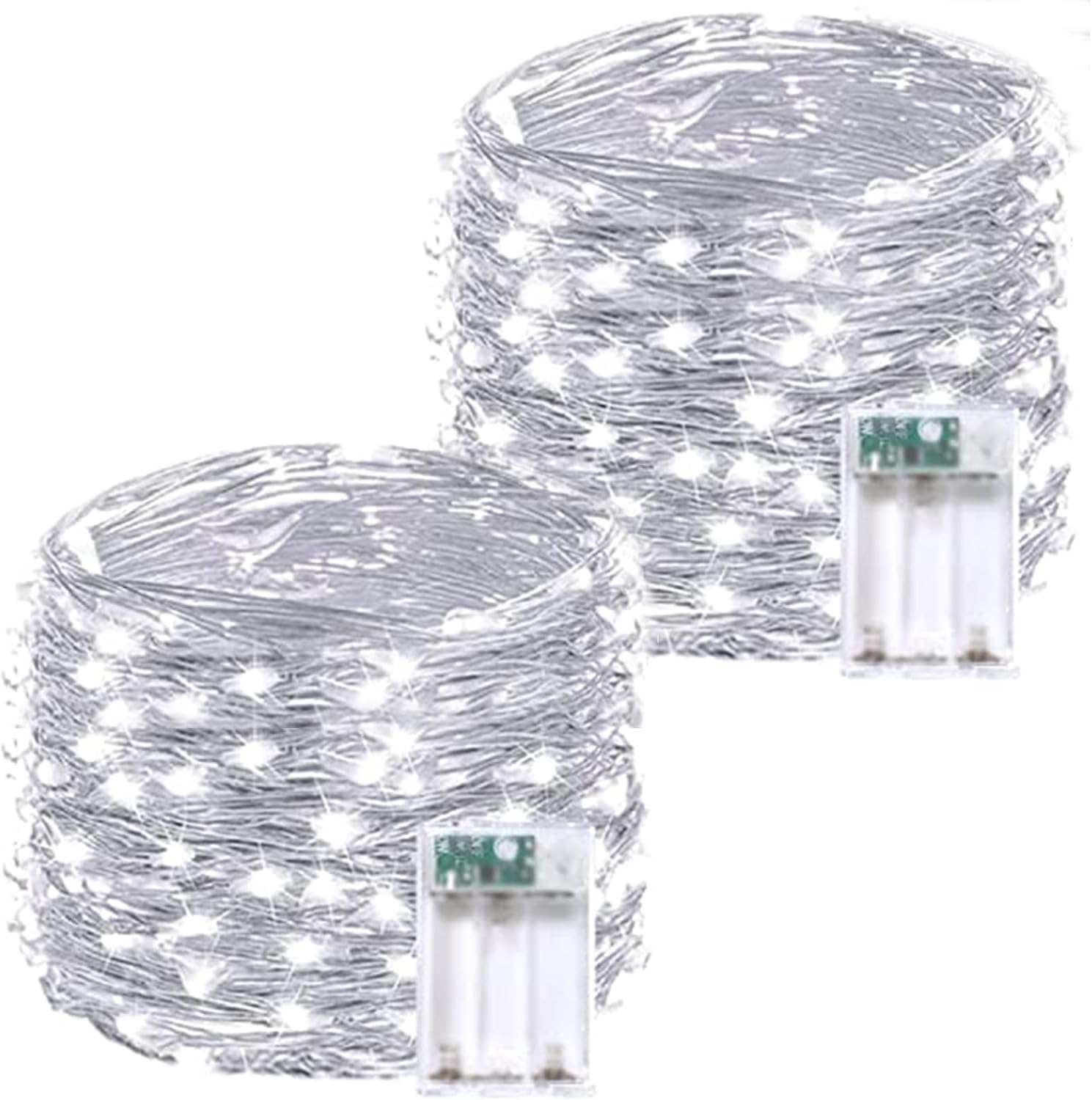 - Ultra-Bright and Durable Battery-Operated Fairy Lights: Each string includes 60 super-bright LEDs, 20 feet of sturdy silver color copper wire, and a battery case with a timer, ensuring longevity and reliability. These cool white lights offer a bright, modern glow, perfect for creating an elegant ambiance. Ideal for indoor and outdoor decor, such as curtain, garland, Christmas tree, bedroom, centerpieces, fireplace, porch, patio, garden, party, and all kinds of holiday decorations.