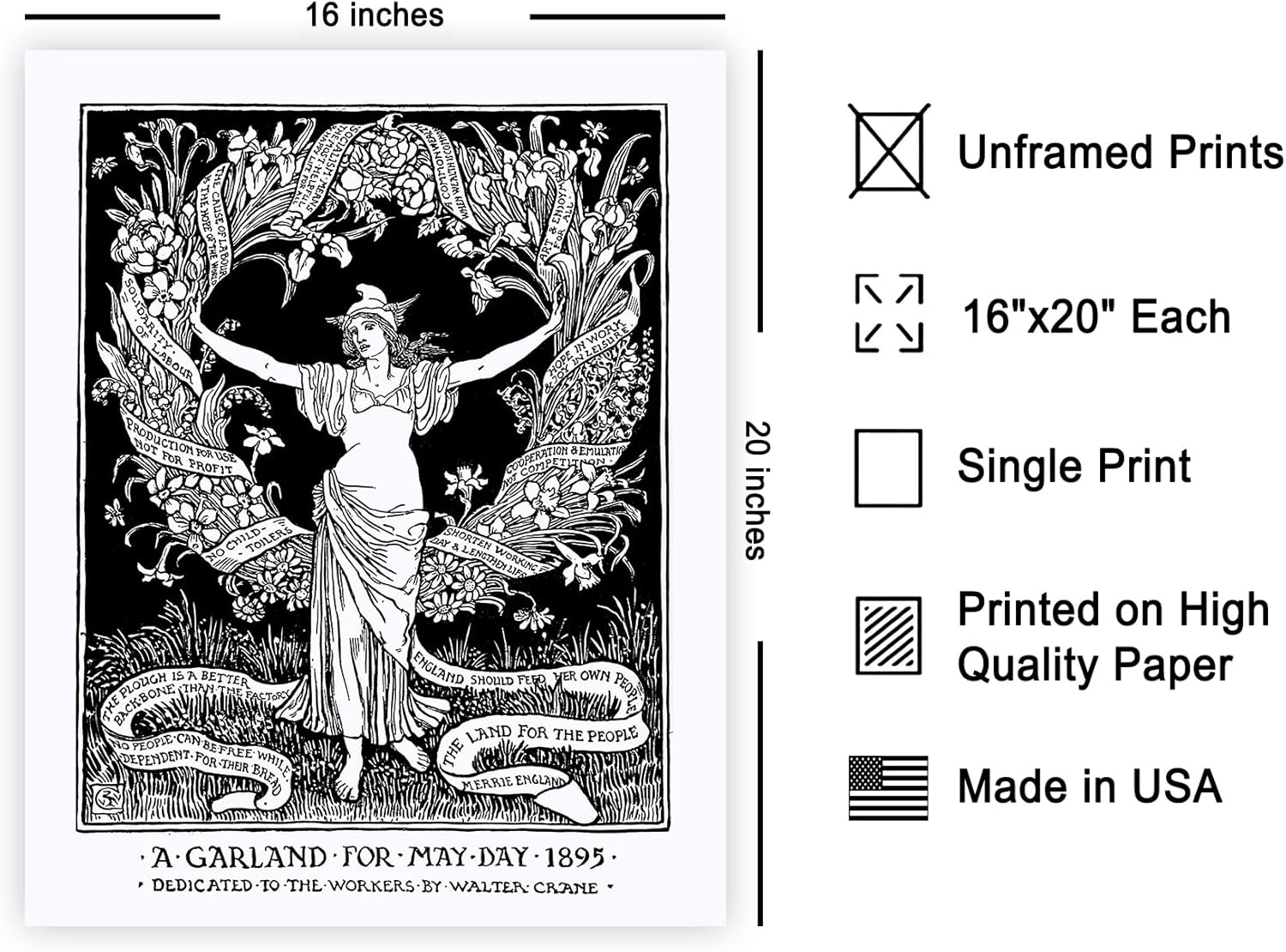 Poster Master Vintage Walter Crane Poster - Retro A Garland for May Day Print - Socialist Art - Gift for Him, Her, Men, Women - Wall Decor for Home, Office, Living Room - 16x20 UNFRAMED Wall Art