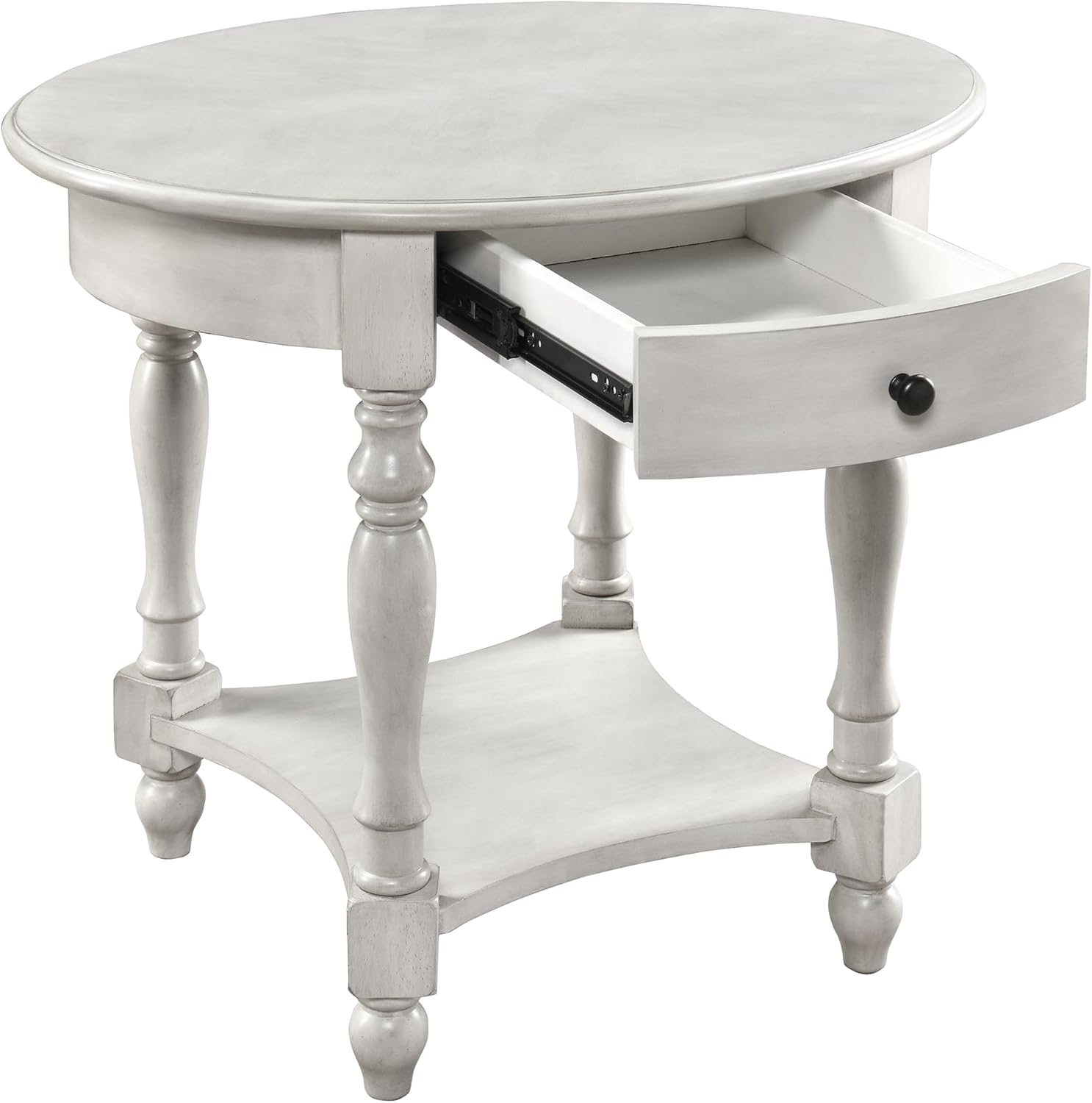 - Elegant Vintage Charm End Table: The oval end table has a sculptural form that impresses with its stately, grandeur appeal. Elegant Vintage Style adds noble and elegant temperament.It is not an end table a home decoration artwork.The sofa side table is made of Rubber wood and Birch sheet,wrapped by antique white finished.