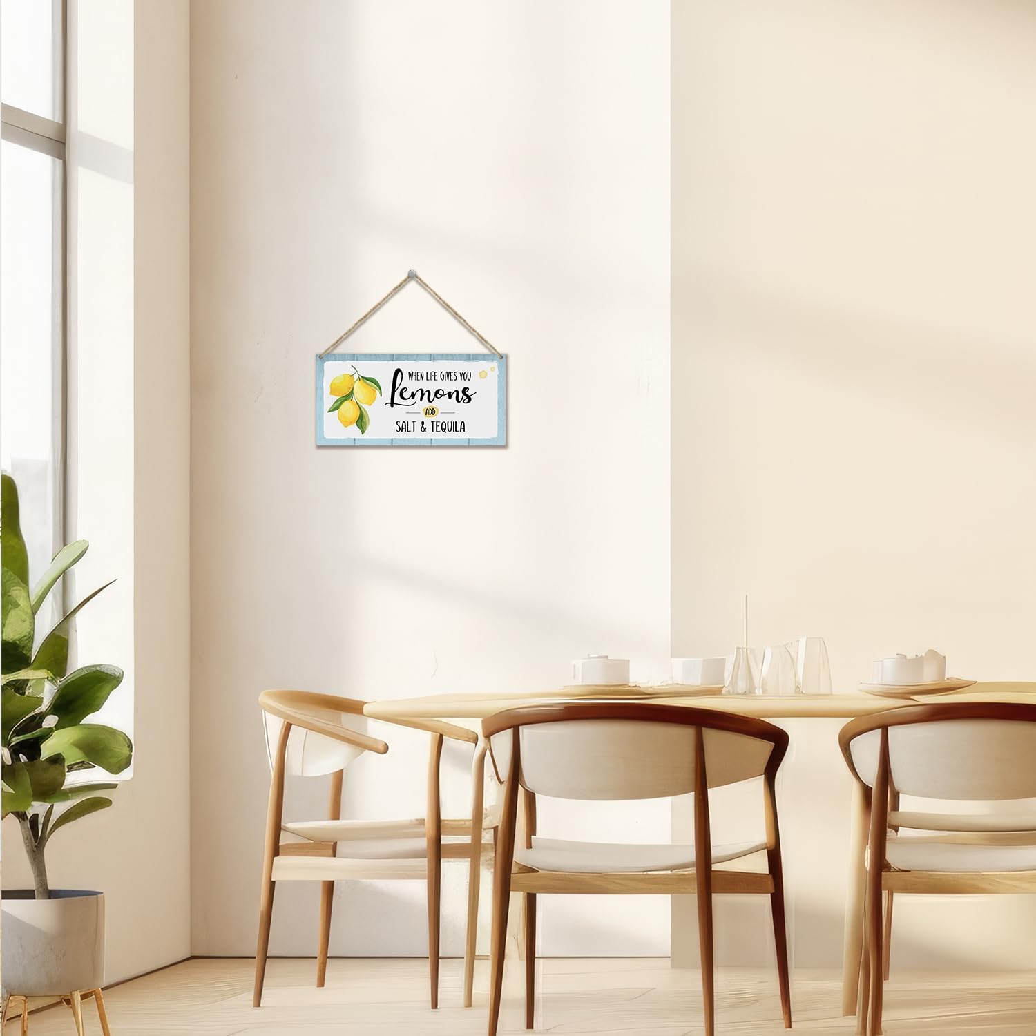 When Life Gives You Lemons Add Salt & Tequila Wooden Hanging Sign Plaque, Lemon Wall Decor Sign With Inspirational Quotes, Rustic Wood Sign Wall Art for Home Living Dining Room Farmhouse Kitchen - A26