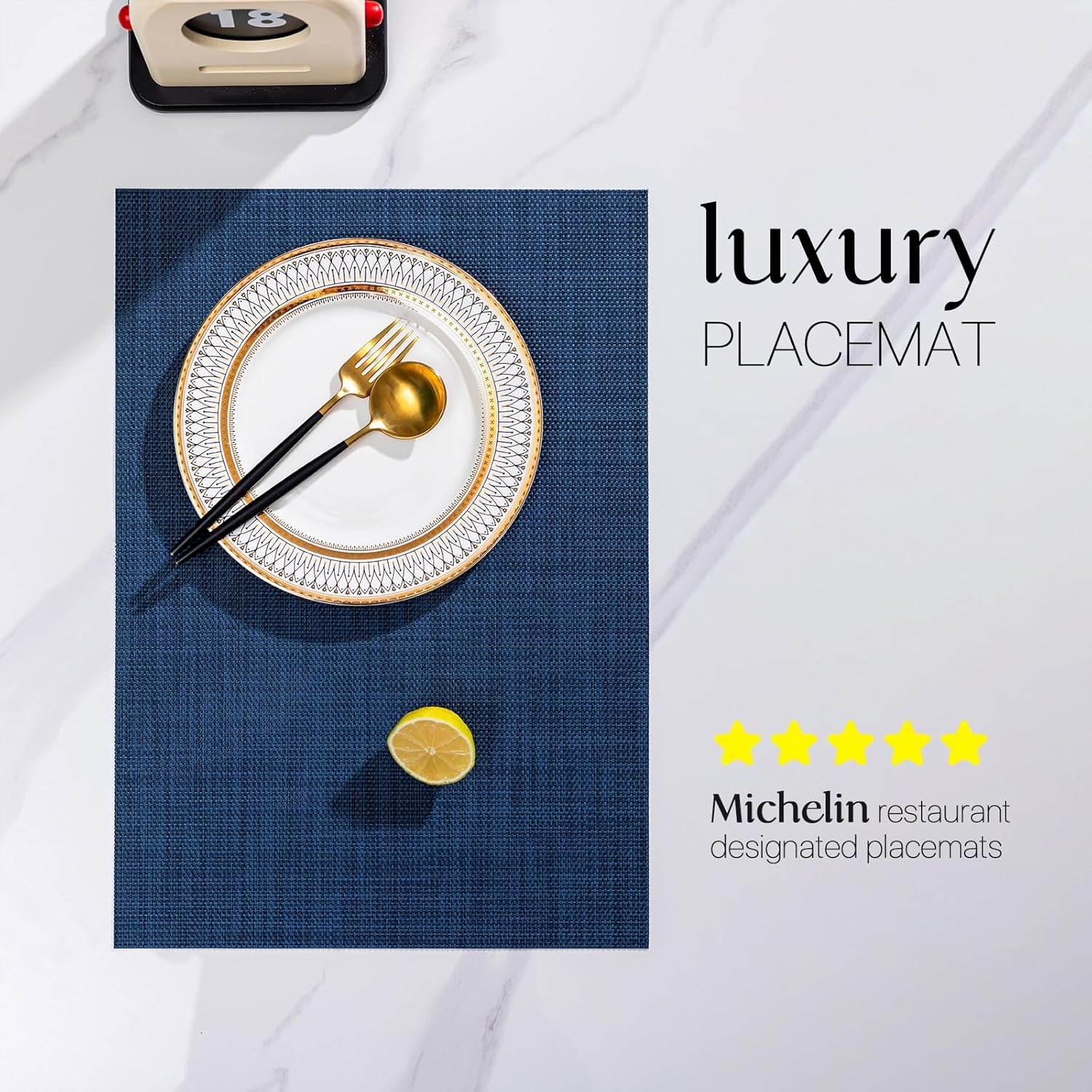 LEXMORE Placemats Set of 4 Vinyl/Plastic Woven Place Mats for Kitchen Table Indoor/Outdoor Washable Placemat Wipeable Dining Table Mats(Navy Blue)