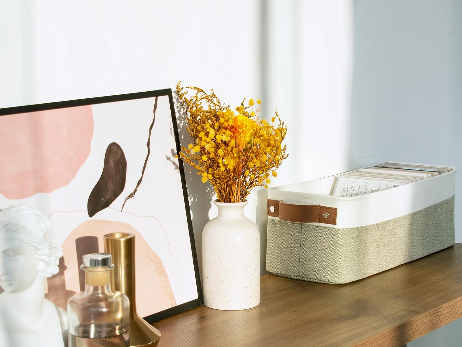StorageWorks Narrow Storage Bins, Small Basket for Closet and Shelves, Fabric Organizer with Handles, Toilet Paper Storage, Green and White, 2-Pack