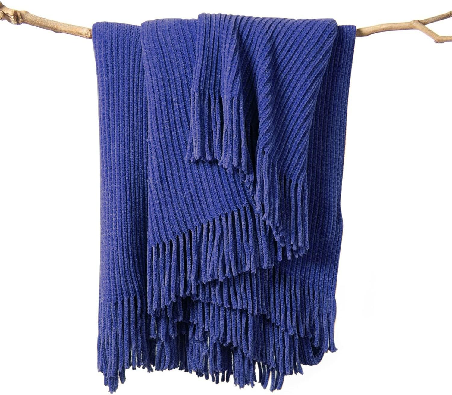 lifein Throw Blanket for Couch, Soft Boho Decor Bed Throw,Cozy Blue Chenille Knitted Small Farmhouse Lightweight Throw for Spring(Blue,60 * 80")