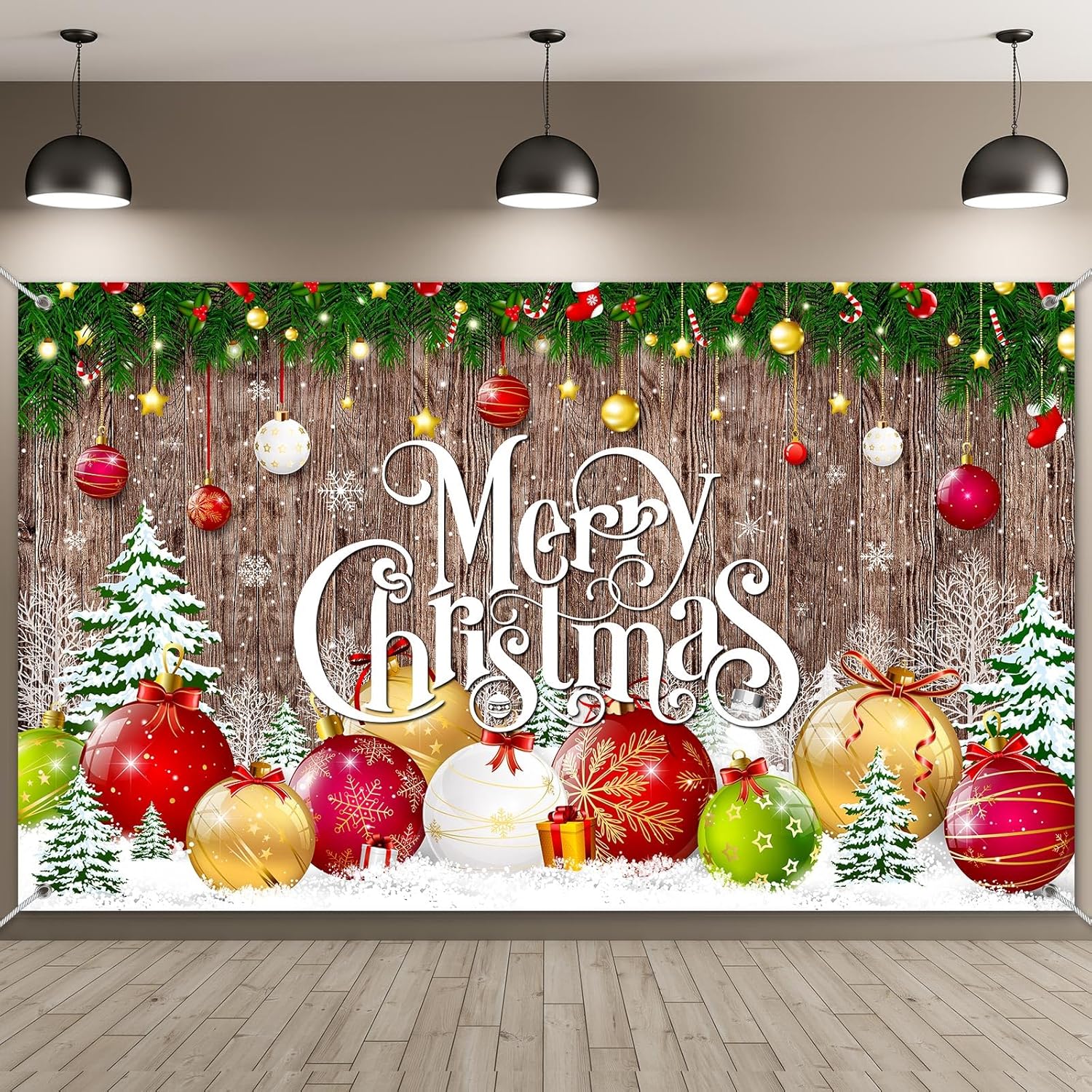 - Appropriate Size: Christmas ball banner sign is approx. 72.8 x 43.3 inches, easy to use and large enough to decorate wall and more, conspicuous for photography with family and friends, help build impressive memory; The whole picture is filled with warm Christmas atmosphere, will help add extra touch to your Christmas party